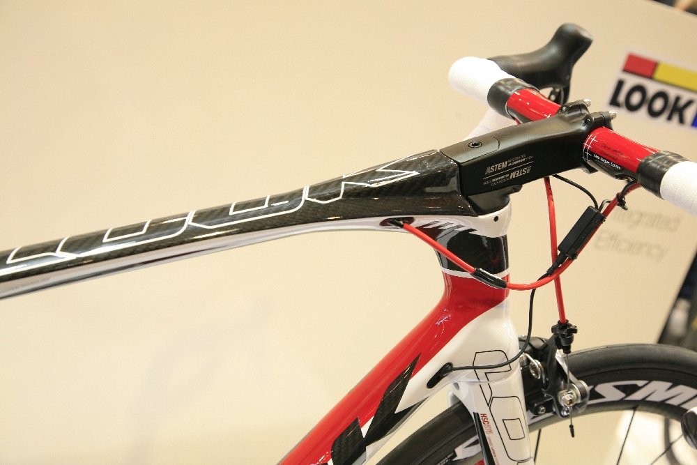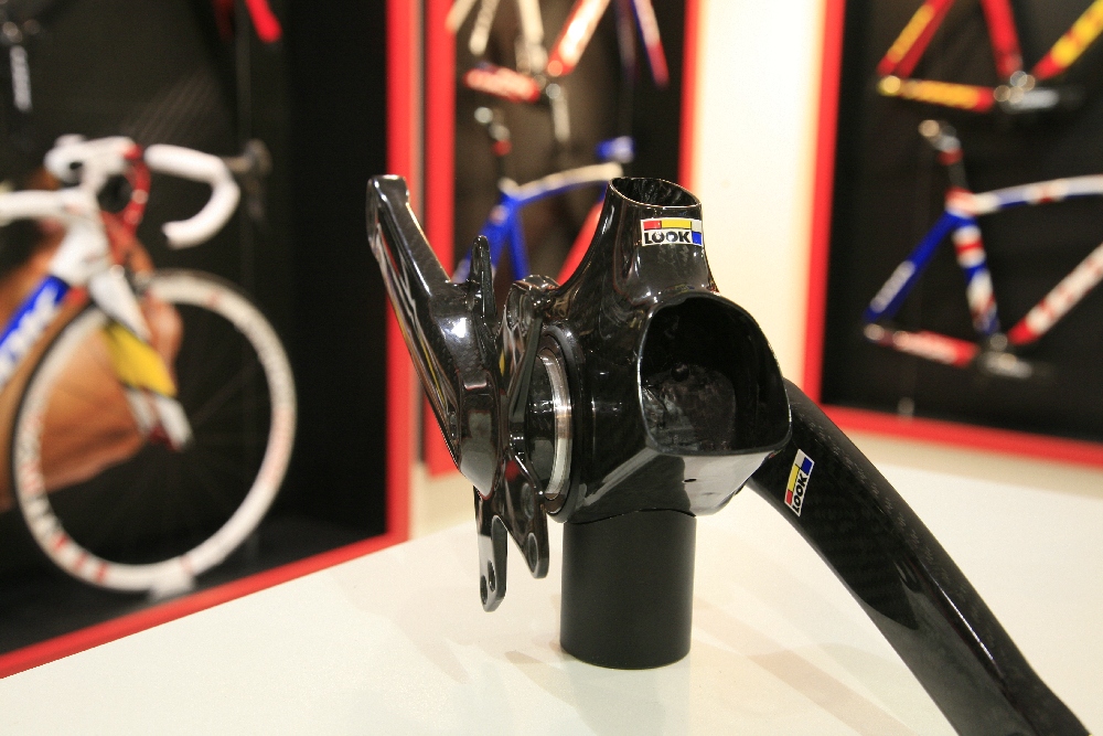 Térjünk át a pedálokról a karbon bringákra: már tavaly bemutatkozott a Look 695, az országúti csúcsmodell, mely bővelkedik nem mindennapi megoldásokban. Elsőre feltűnik érdekes formájával a kormányszár, amely nemcsak szokatlan formájú, de nagyjából minden paramétere állítható. Ráadásul bármilyen furán hangzik, a kormánycsapágy és a kormányszár közös csavarral szorítható meg.