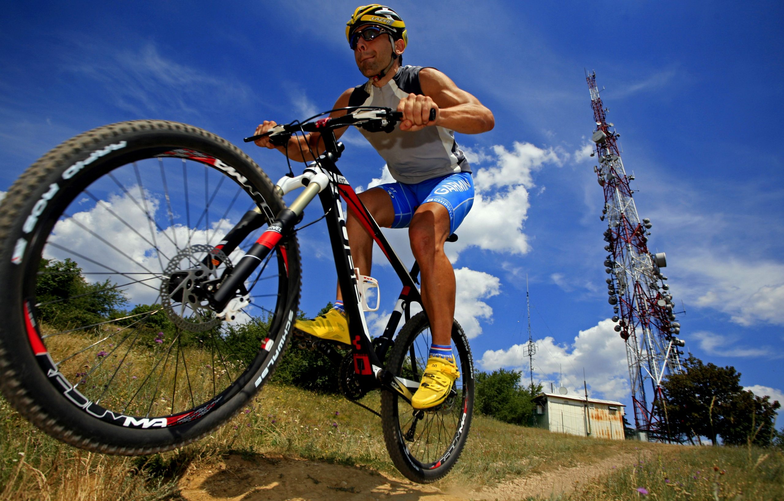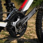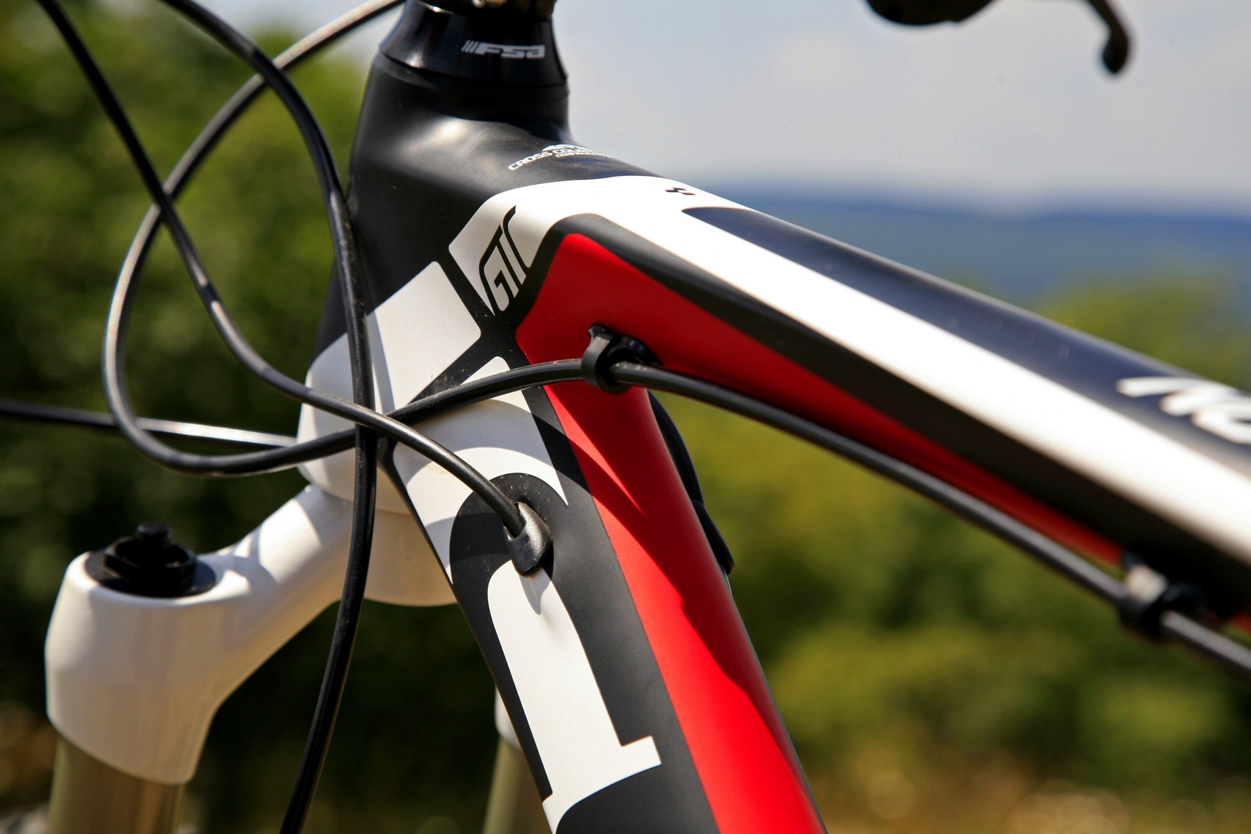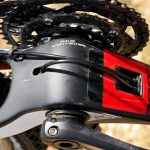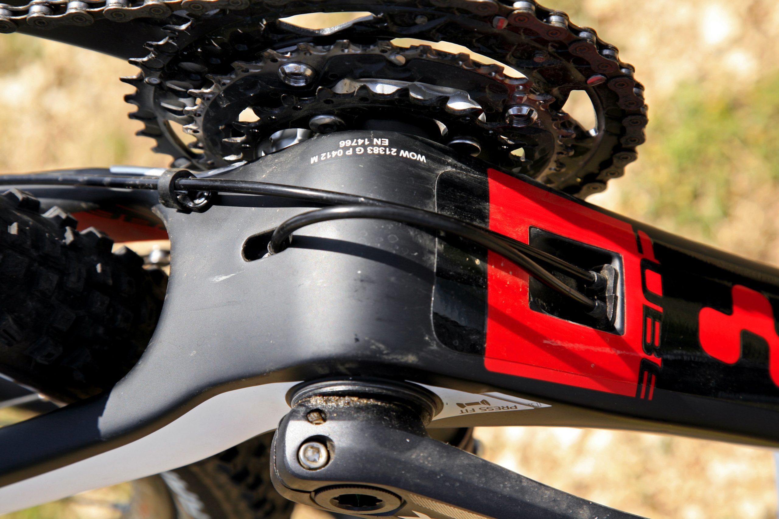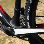 Ami messziről feltűnik, az a középrész iszonyúan robusztus kialakítása, a tengelyt gyakorlatilag teljes szélességében körülöleli, nagyon hatékony így a pedálozás. A kompozit vázban jól keverhették a karbonszöveteket, mert annak ellenére, hogy a tám- és főleg a láncvillák is a vaskosabbak közé tartoznak, mégsem kellemetlenül merev a kerékpár, nem sokkolja rázós terepen a gerincet, de azért mindenképpen a feszesebbek közé tartozik.