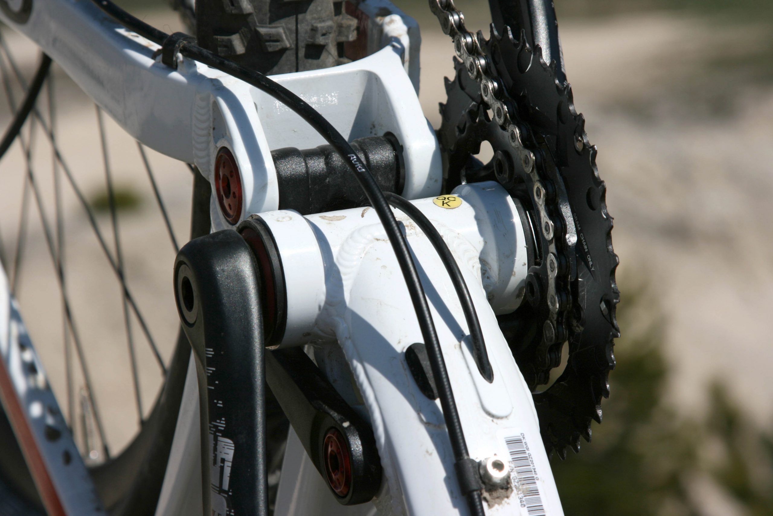 Az Anthemnek nincs ilyen. Ezt én mondjuk nem kezeltem gondként, mivel mindkét gép kábelei jó helyen vannak vezetve, így gondot egyik sem okoz. A Trance-en az állítható nyeregcső kábele is egy belső csatornában fut, ami mondjuk hasznos, ha vállra kell venni a gépet. A váltó bowdenei az alsócsővön futnak, és kézzel meghúzogatva őket kicsit hülye hangot hallattak, de furcsa módon ebből menet közben semmit sem érzékeltem. Vagy azért mert úgy nem is csörgött, vagy azért mert olyan gyorsan mentem lefelé, hogy érkezésem sem volt ilyesmivel foglakozni, na meg a menetszél is elnyomja az esetleges zajokat. Az mondjuk kicsit furcsán mutat, hogy vannak belül vezetett bowdenek, de a fékcső olaj vezetéke mégis csak kint fut. Szerelési szempontból ez előnyös, csak így kicsit vegyes a kép.