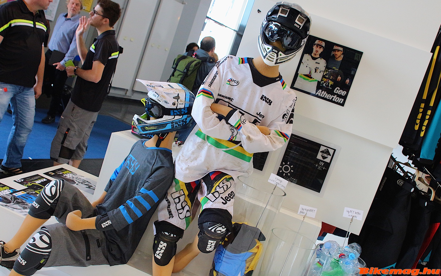 Egyre több cég próbál zöldebb módon működni. Ebbe a sorba az iXS is beállt. Új termékvonaluk alapanyagához újrahasznosított PET palackokat használnak, melynek segítségével 50 %-kal sikerült csökkenteni az előállításának széndioxid kibocsátást. De azért ne préselt nejlon szatyrokat képzelj el, hanem nagyon magas minőségű poliészter textilt állítanak elő belőle. Ahogy a képen is látható meg lehetett tapogatni az újrahasznosított alapanyagból készülő textilt, és tapintásra semmi különbséget nem lehetett felfedezni. Ha egy világbajnok Gee Athertonnak megfelel, akkor talán nekünk halandóknak is jó lesz. A széria férfi és női modelleket is tartalmaz, illetve mezt és nadrágot foglal magába.