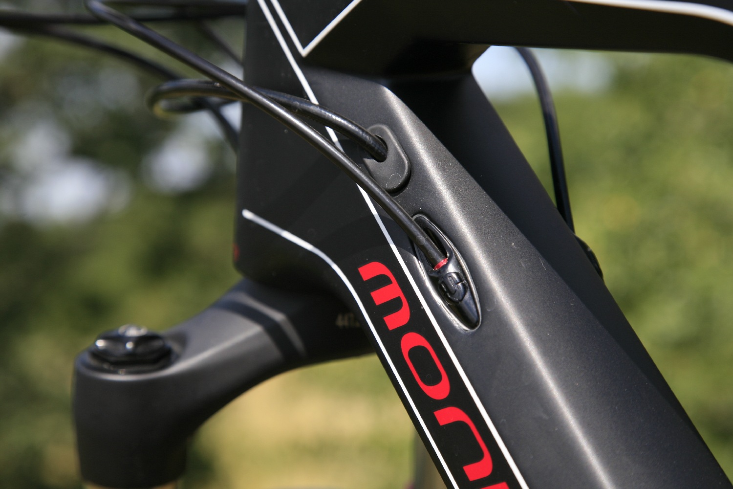 Elméletileg ez a kialakítás lehetőséget biztosítana arra is, hogy alacsonyabbra, versenyzősebb pozícióba kerüljön a kormány, azonban ha elkezdünk méregetni, azért ez nem teljesen valósul meg. OK, egy gyári beállítású hagyományos bringához képest valóban lejjebb van a pilótafülke, de ha egy rövidebb normál homlokcsővel rendelkező monti stucnija alól kiszedjük a hézagolókat és lefelé fordítjuk a szárat, hasonló lesz a magassága.