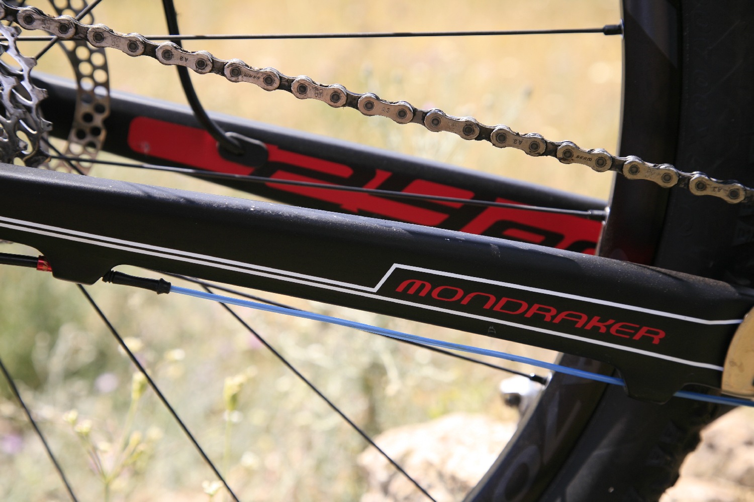 Leszámítva a szokatlan homlokrészt, egy rendkívül igényes kidolgozású karbonvázzal van dolgunk, amit megszokhattunk már a Mondraker alumínium fullykon. Ez igaz a bowden-vezetésre is, melyek a vázon belül futnak, a 29-es bringán még a láncvilla alatt is 100%-ban burkolva, tökéletesen kizárva a szennyeződés lehetőségét! Menettulajdonságai szempontjából a hátsó része is jól sikerült mindkét bringának, merevek a gépek, de nem ridegek.