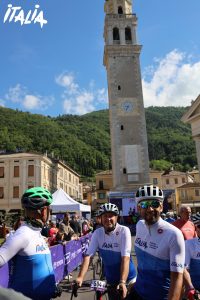 A három hét során összesen 18 szakaszt, 1829 kilométert és 24 000 méter szintkülönbséget küzdöttek le a Giro E résztvevői, összesen 533 fő! A 10 hatfős csapatnak többnyire csak a kapitánya volt fix ember egyébként váltották egymást az ismert olasz sportolók, médiaszemélyiségek, vagy éppen újságírók. Mi, utóbbiak az Olasz Turisztikai Ügynökség (ENIT) színeiben tekertünk, kapitányunk Max Lelli, aki korábban versenyzőként dobogóra állhatott a Gio d’Italia-n, most egy toszkán hotelben kerékpáros turizmussal foglalkozik.