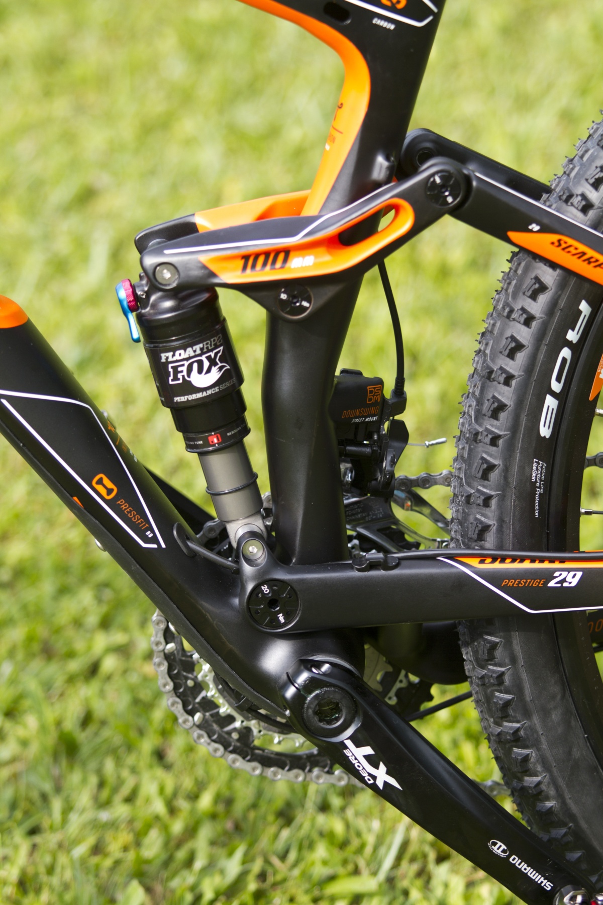 A két összehasonlított fully, közül a 29-es Scarp karbon váza PDS felfüggesztéssel 100 mm-t mozog és 2250 grammot nyom, a 650B méretű karbon Lycan súlyban ugyanezt tudja, plusz további 25 mm-t kínál rugóútban. A KTM 29-esei és a Lycan 651 is szabvány 12mm/142m-es tengelyt használ hátul, beleértve a merev 29-est, a Myroont is.