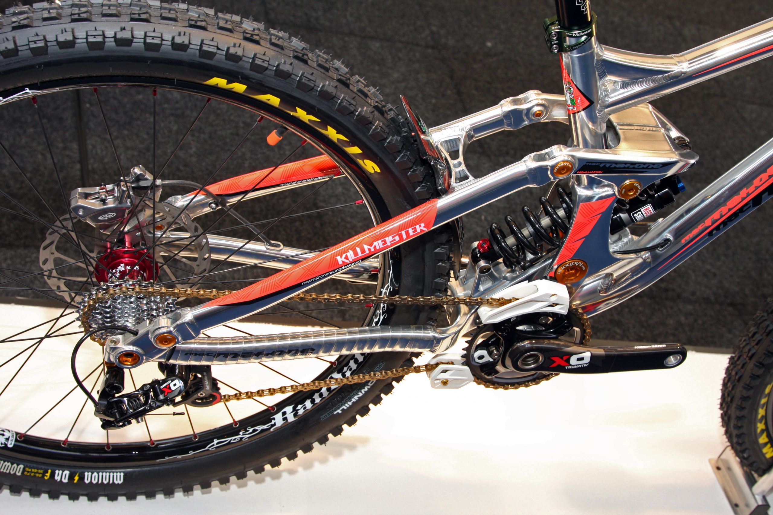 Felhívnám a figyelmet az alábbi finomságokra: gravírozott forgáspont és tengely kupakok, vázon belül vezetett kábelek, (igen, az olajcső is!!!) karbon X0 hajtómű, dupla titán csavaros CNC-zett nyeregcső bilincs, Taper fejcső, Direct Post Mount fékkonzol, 3,8 kilós váztömeg. További pozitívum, hogy a kiegészítők nagy része is házon belül készül, így azok is kellőképpen csúcsra járatott cuccok.