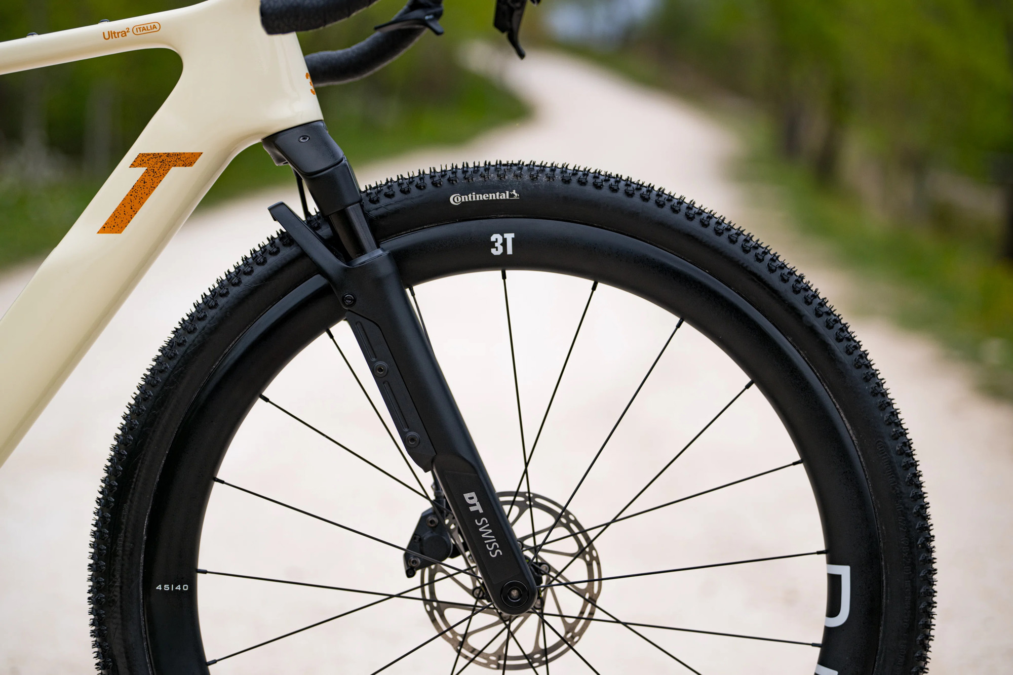 Határok: a merev Fango villával akár 57 mm-es (WAM) gumiszélesség is elfér, ami a 3T kínálatának legnagyobb értékeivel egyezik meg. Ez lehetővé teszi, hogy a bringa ott is megőrizze a tempót és a hatékonyságot, ahol a durva terep máskülönben lassításra kényszerítene.