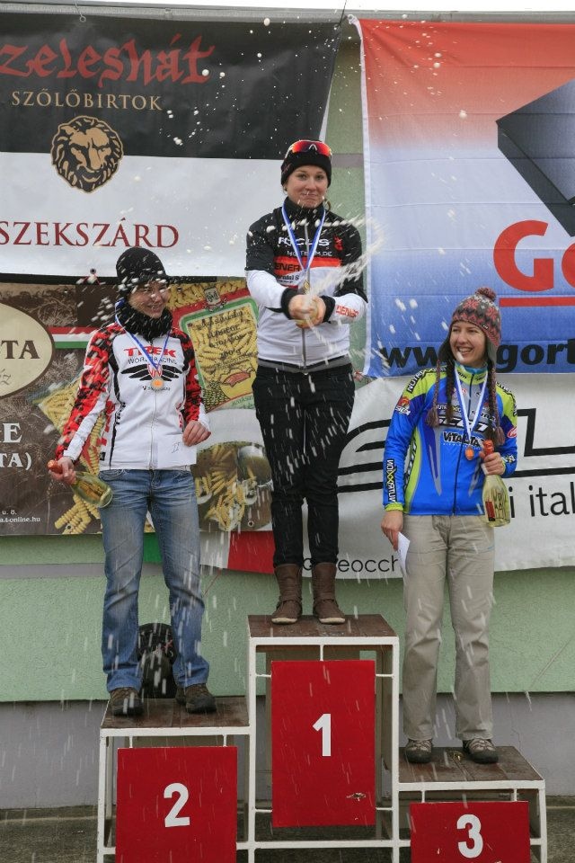 Aztán jött a hír november közepe felé, hogy a Bajnokság ugyan Békéscsabán lesz, de egy héttel később, január 12-én. Bumm, akkor ez kimarad! Nem szeretném átfoglalni a repülőjegyem több 100 Euroért és egy hetet veszíteni az edzőtáborból, mert nyáron szeretnék gyors lenni, nem most… Bár sajnálom és bánt kicsit, hogy kimarad pont ez a verseny, mert még a pálya is tetszik, esélyes is vagyok, de ez van, majd jövőre! Közben elmarad a január 6-i Footstrong Cross is, így számomra véget ért a nem hosszú, ám szerencsére eredményes cyclocross szezon és örülök, hogy egy győzelemmel sikerült búcsúztatnom az óévet! 2. Orosz Anita lett, 3. Dósa Eszter!