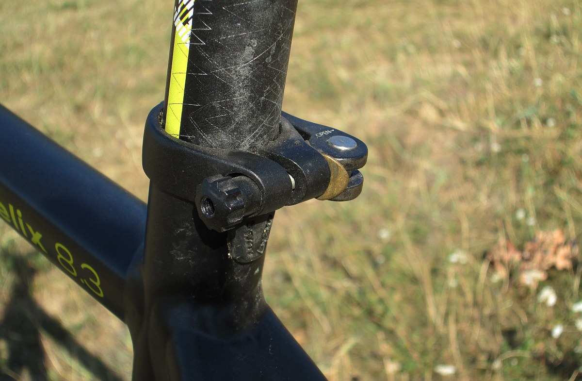 Ennél a gépnél is kiemelném a gyártó saját márkás alkatrészeit. Ezek műszaki színvonalukat tekintve megfelelnek egy-egy jobb alkatrészmárka közép-felsőközép kategóriás típusainak, és esztétikailag is nagyon mennek a vázhoz. A kormány dizájnja a sok kis Bergamont logóval kifejezetten trendi és látványos. A kormány szélessége a kerékpárméretétől függően változik: 620, 640 vagy 660 mm. 9 fokos hajlítását pont megfelelőnek éreztem. Hasonlóan igényes darab a nyeregcső is, mely a legtutibb 2 csavaros nyereg felfogatási rendszert alkalmazza. A nyeregcsőbilincs is említésre méltó, ugyanis 3 okosságot is találtam eme piciny alkatrészben: a szorítókar nem gyorsan szétkopó műanyag alátéten fut, hanem egy erős fémlemezen, a csavar ellendarab is jól megfogható barázdás kialakítású (triviálisnak hangzik, de mégis oly ritka), harmadsorban pedig a nyeregvázcső hátul elhelyezett bevágását takarja egy lenyúló gumi takaróelem, így akadályozva meg a sár és víz bejutását.