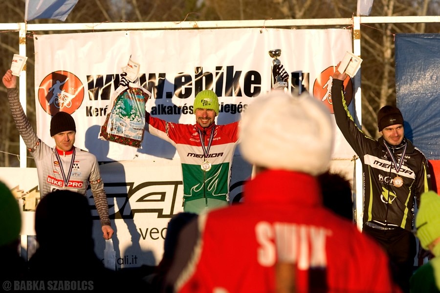 Nagyon örültem, hogy végre nem a szlovákok vitték el a győzelmet! Sokat számított a jó külső gumi választás, inkább a sűrű apró mintás tapadt jobban a jeges havon Én is a canti fékes karbon Ritchey kerekeket részesítettem előnybe az apró mintás Racing Ralph gumival. A többi kategóriában is visszavágtunk. A nők között Benkó Barbi hozta el az aranyat, U19-ben Dina Marci aratott magabiztos győzelmet. Szép munka volt lányok-fiúk! 🙂