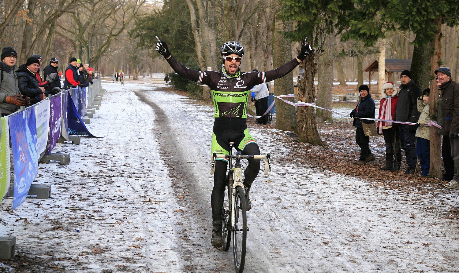 „Az nyer, aki tovább marad talpon” – mondta a győztes Buruczki Szilárd, a Merida-Kőbánya TC versenyzője a 2013-as magyar cyclocross bajnokság helyenként összefüggő jéggel borított pályájára utalva, ami valódi krosszos kihívások elé állította az indulókat…