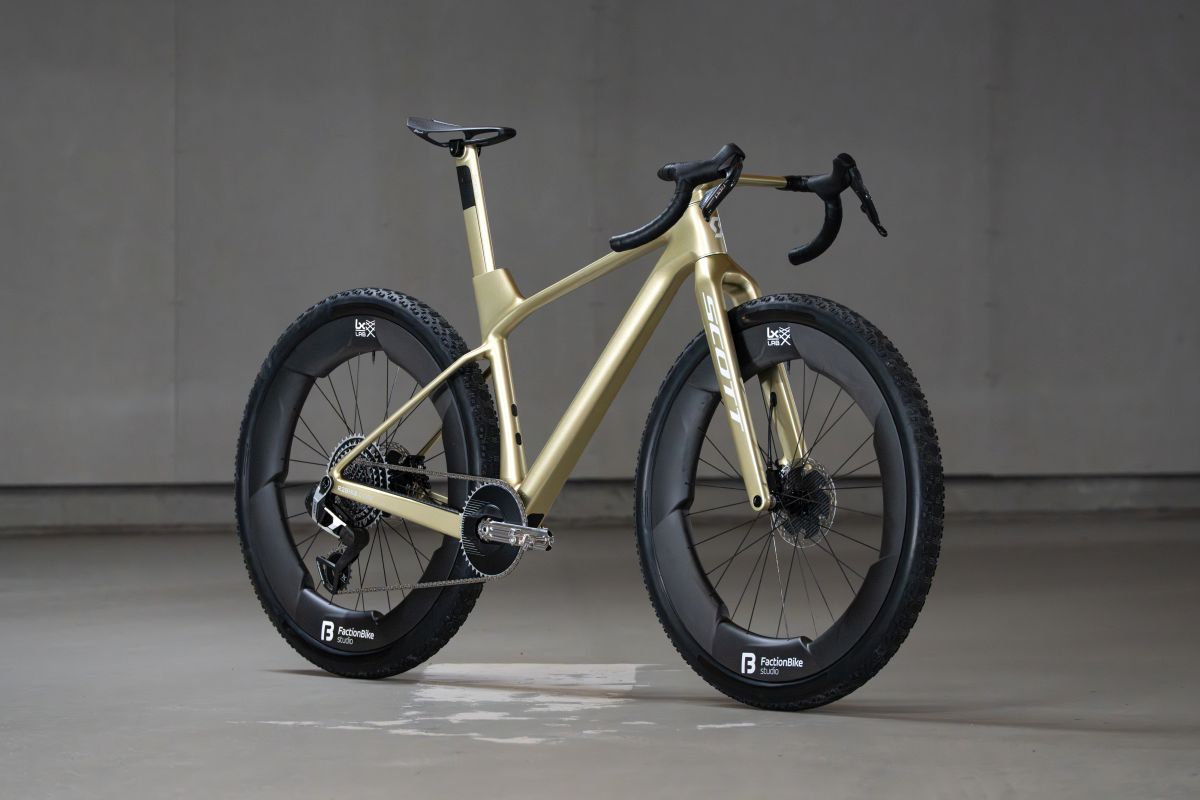 A kerékszettet a kanadai Faction Bike Studio és az LX Lab készítette: 45 mm belső, 52 mm külső szélességű, 70 mm mély, hullámos profilú prototípus felnikről beszélünk, kifejezetten 2,25”-ös gumikhoz igazítva. A koncepció lényege, hogy a nagyon széles felni nagyobb légteret ad a guminak, ezért alacsonyabb nyomáson is feszesen tart. Így a bringa a rosszabb minőségű, rázósabb utakon is könnyebben képes a tempót tartani.