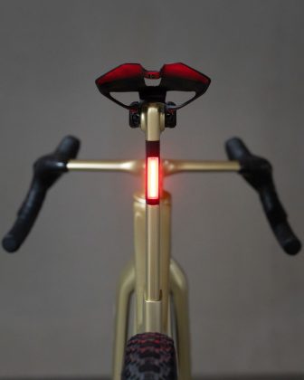 A hátul teljesen Foil‑stílusúra szabott Scale‑hez adta magát a Syncros Duncan SL Aero CFT nyeregcső, tetején a mindössze 99 grammos Berk Lupina Monocoque nyereggel. A nyeregcsőbe integrált Syncros Campbell 20 Aero iL hátsó lámpa igazi Forma–1‑es fénycsíkká varázsolja a kerékpár hátulját, minden konzol és pánt nélkül.