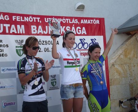 S megszólalt a csengettyű: az utolsó körünk következik. Majd célegyenes, jó meredek, ahol is Anita úgy elsprintelt mellettem, ahogy azt tanítják. Próbáltam reagálni rá, de sok esélyem nem volt. Hát igen, ez az országút… De sebaj, megvan a második hely, újfent 5 mp-re Anita mögött. Harmadikként Veronika érkezett. Célba érést követően azonban akadt még teendőm: doppingvizsgálat!