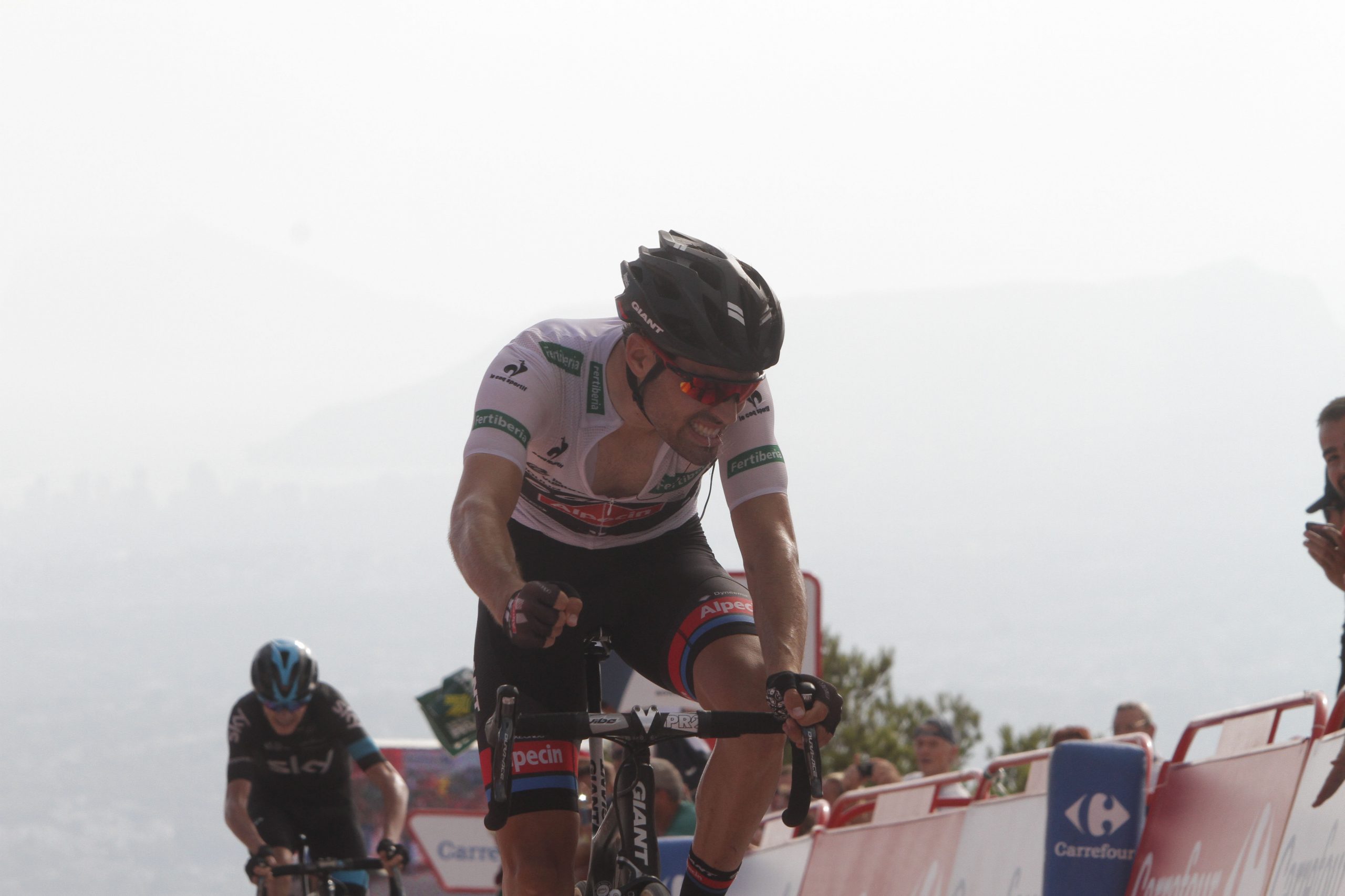 A véghajrában aztán az összetett második helyezett, Tom Dumoulin (Giant-Alpecin) mutatkozott a legmakacsabbnak. Többször is úgy tűnt, a kelleténél túl korábban indított. Előbb Rafal Majka (Tinkoff-Saxo) ltszott erősebbnek nála, majd a Chris Froome-Joaquim Rodriguez duó.