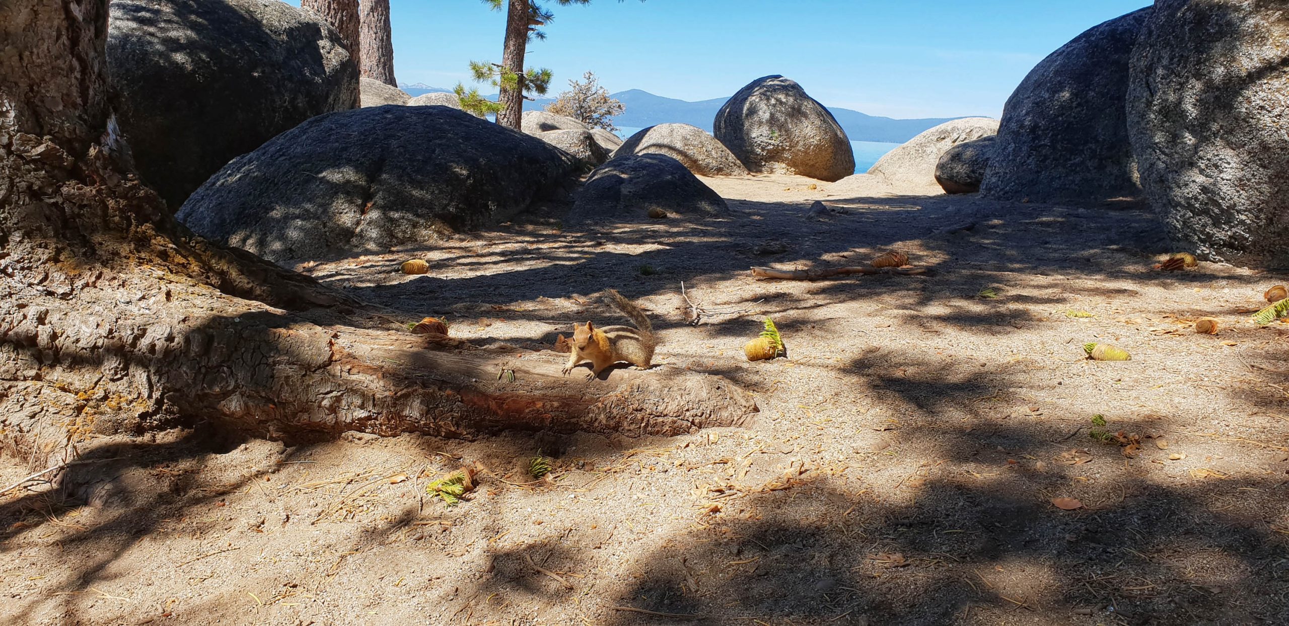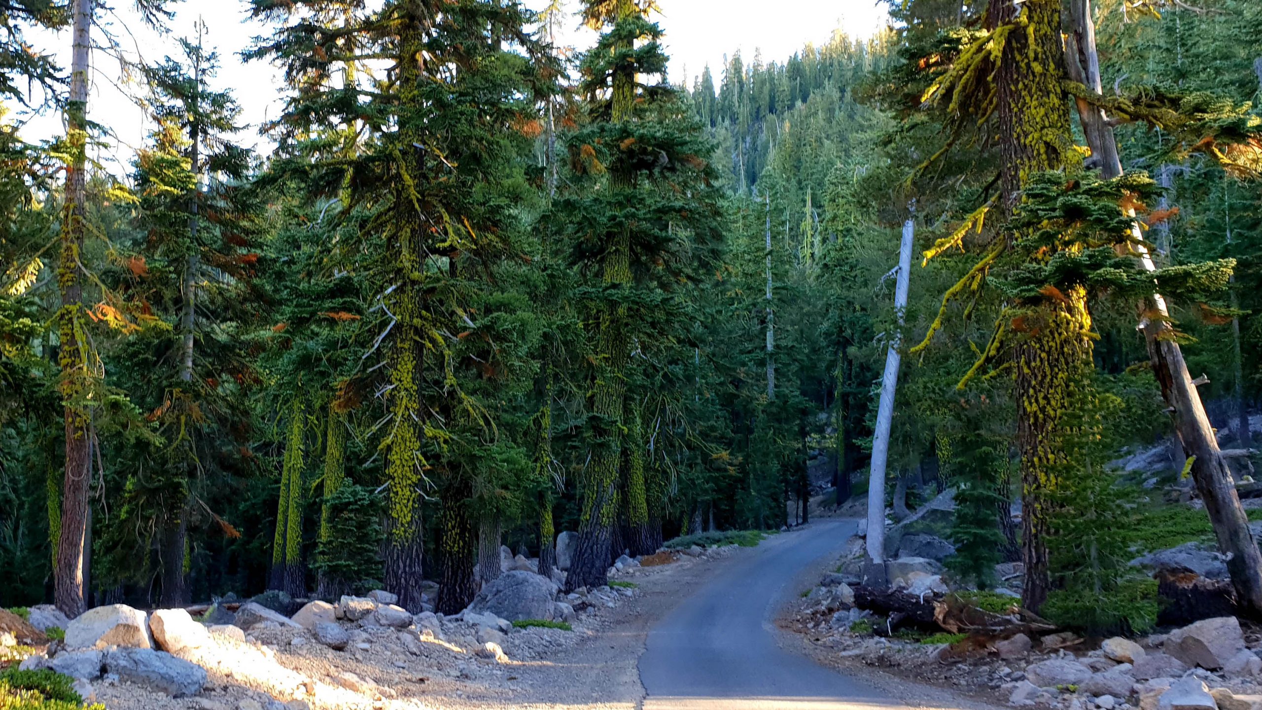 Átjöttem a tó északi, északnyugati részére, hogy itt is bringázzak. De előtte még megnéztem a tavalyi alvó placcom útközben, érdekelt miért is nem jelölik már a freecampsites oldalon, hát sajna mert kitettek egy tiltó táblát. Amit nem értek, mert az egy nyugis elszeparált hely volt, nem volt szem előtt az ember. Az út mentén meg most is lehet, pedig ott szinte útban is van. Nagy dráma nincs emiatt, volt tarcsiban egy másik fullos hely panorámával a Lake Tahoe-ra, és még térerő is van.