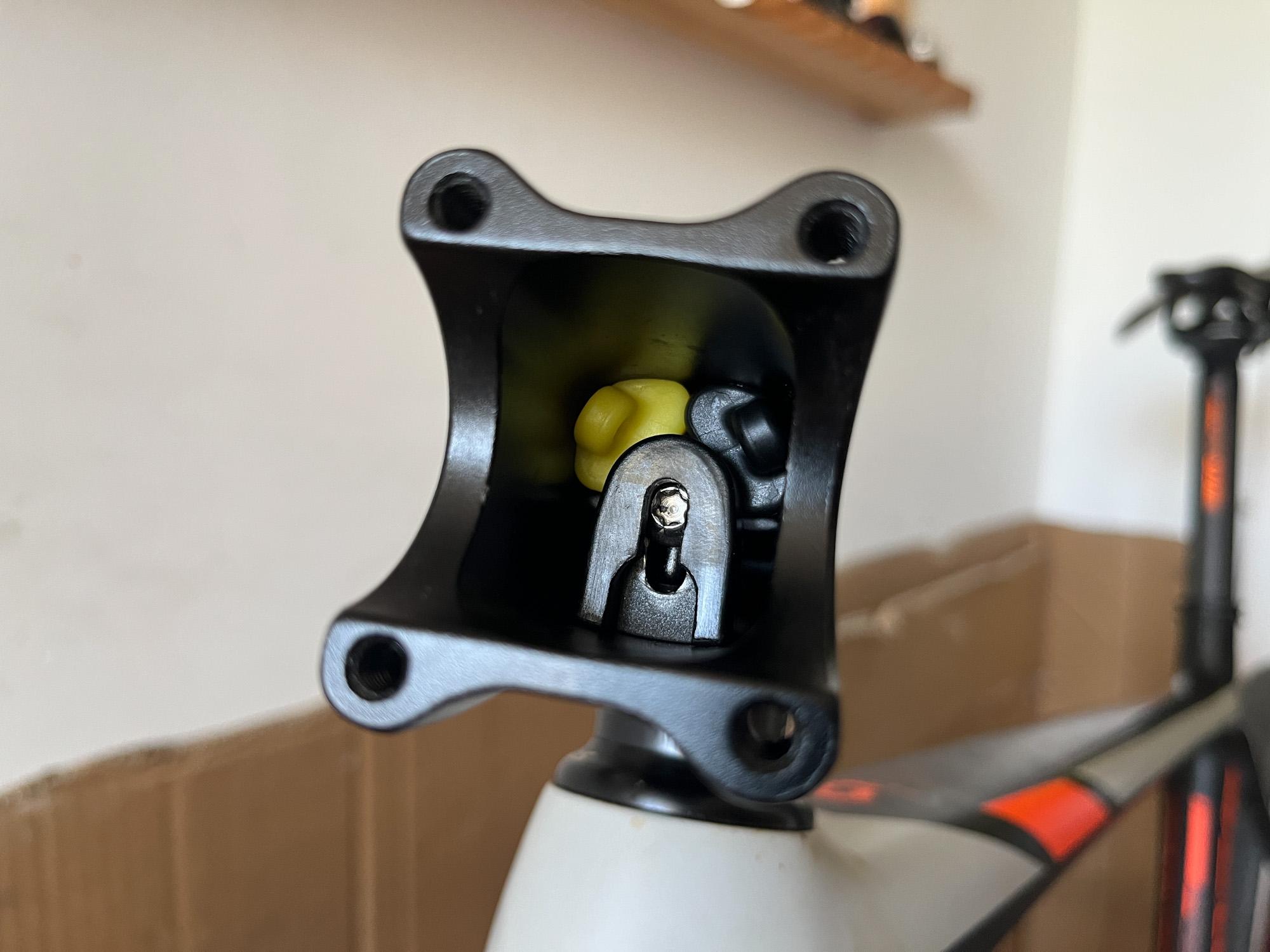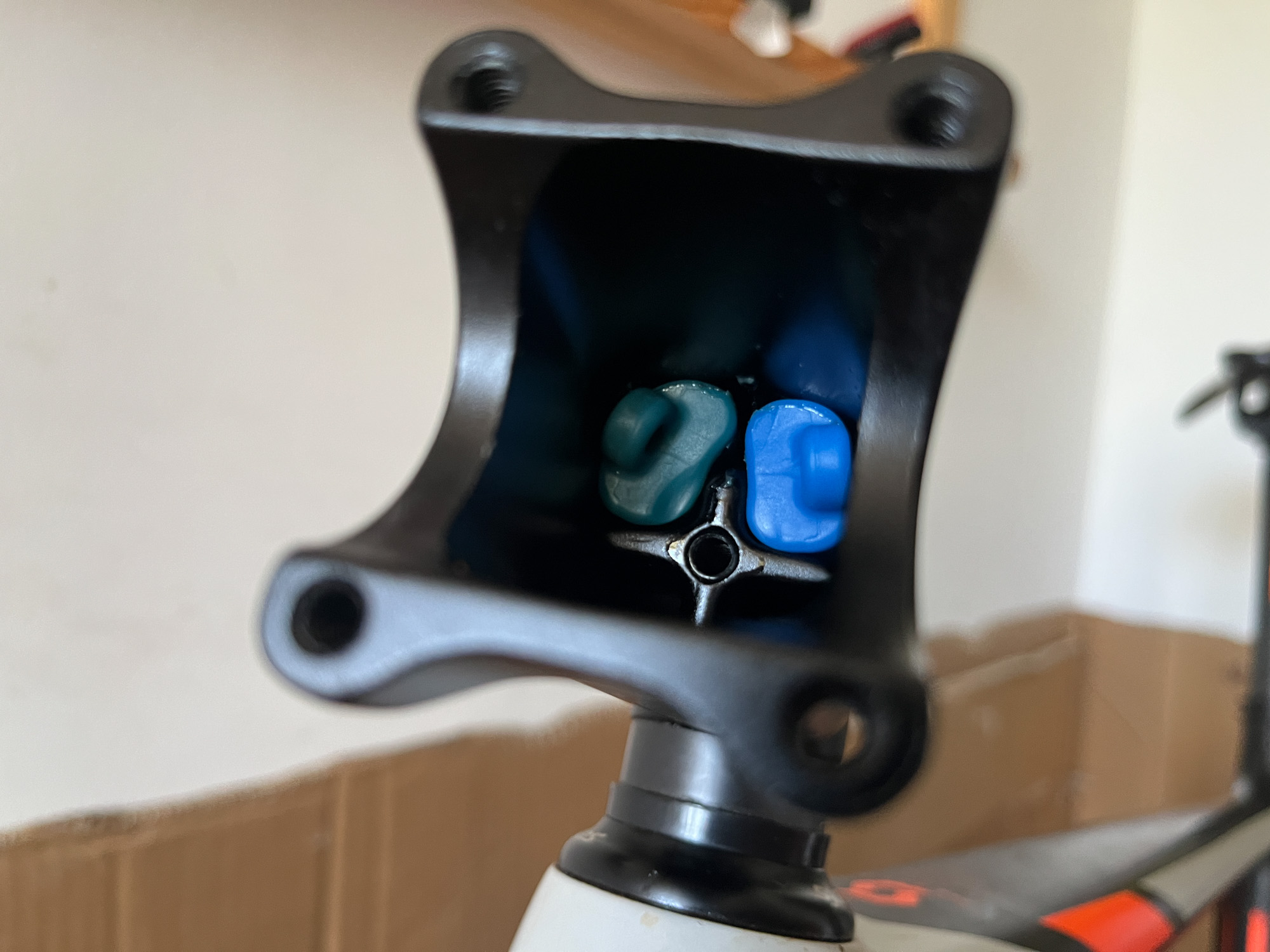 A kormányszárat már az első használatkor imádtam, kaptam egy mini teleszkópot előre, ami felvette az út felől érkező ütések egy részét. Ennek ellenére nem hintázott a bringa eleje ülve tekerés közben és nem éreztem azt kiállva sem, hogy csavarodna a kormányszár. Óriási találmány. Szuper volt ahogy csillapította a nagyobb kátyúkat az úton és terepen is ég és föld volt egy normál stucnihoz képest. Kényelemben kb olyan volt mintha bekerült volna egy óriási gumi előre. Egyébként kicsit puhának éreztem az elasztomerek alám, ezért eggyel keményebbeket tettem be, amik a mai napig benne vannak a kormányszárban.