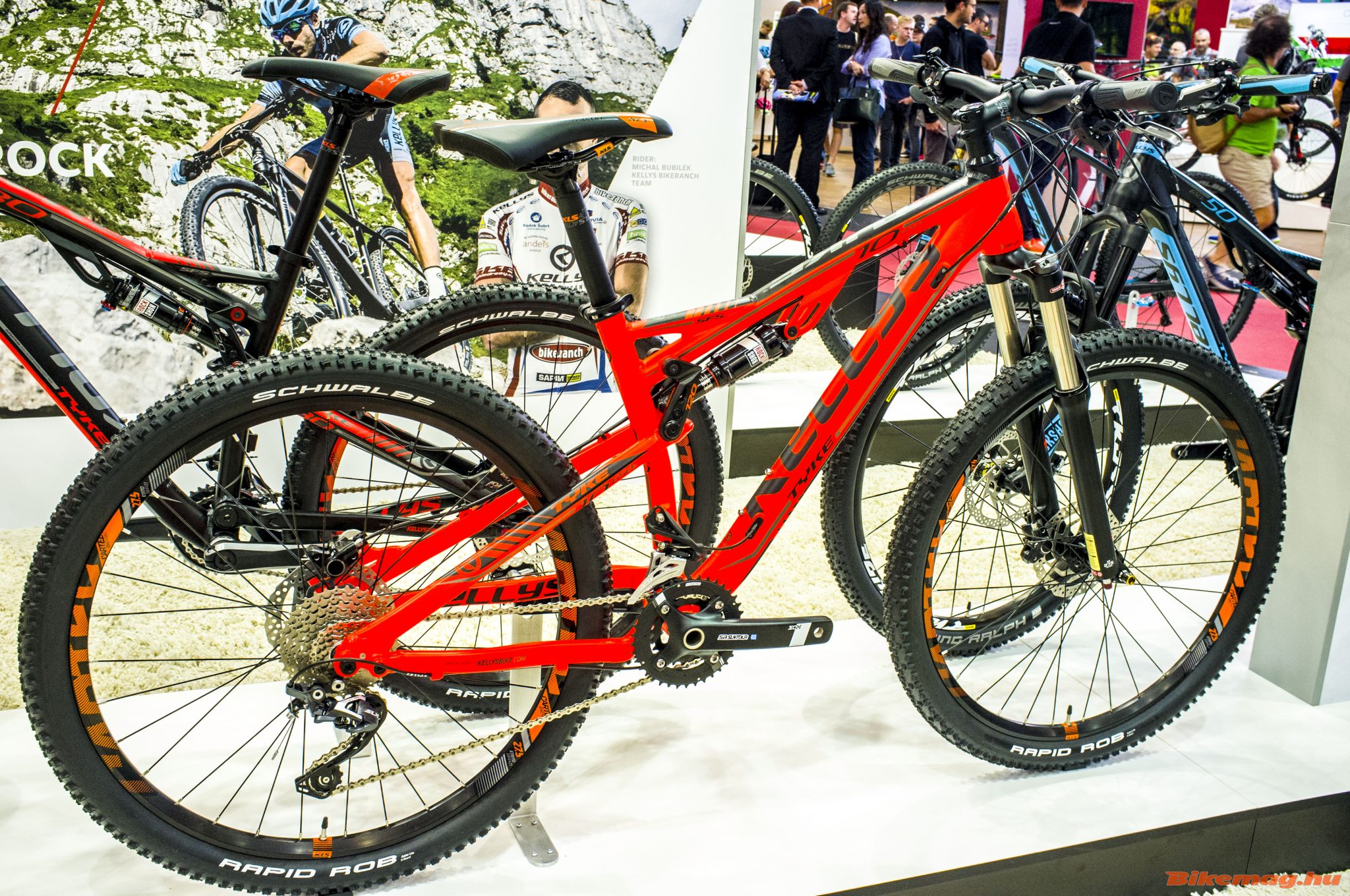 Az Eurobike-on természetesen a csúcsmodellek voltak reflektorfényben, főleg a mountain bike fullyk. A legfontosabb újítás, hogy a Kellys Eraser karbon enduró bringa megkapja a Noid DH gépből és a Swag alumínium enduróból származó virtuális forgáspontú felfüggesztést, ami Ratio Trail Control névre hallgat.