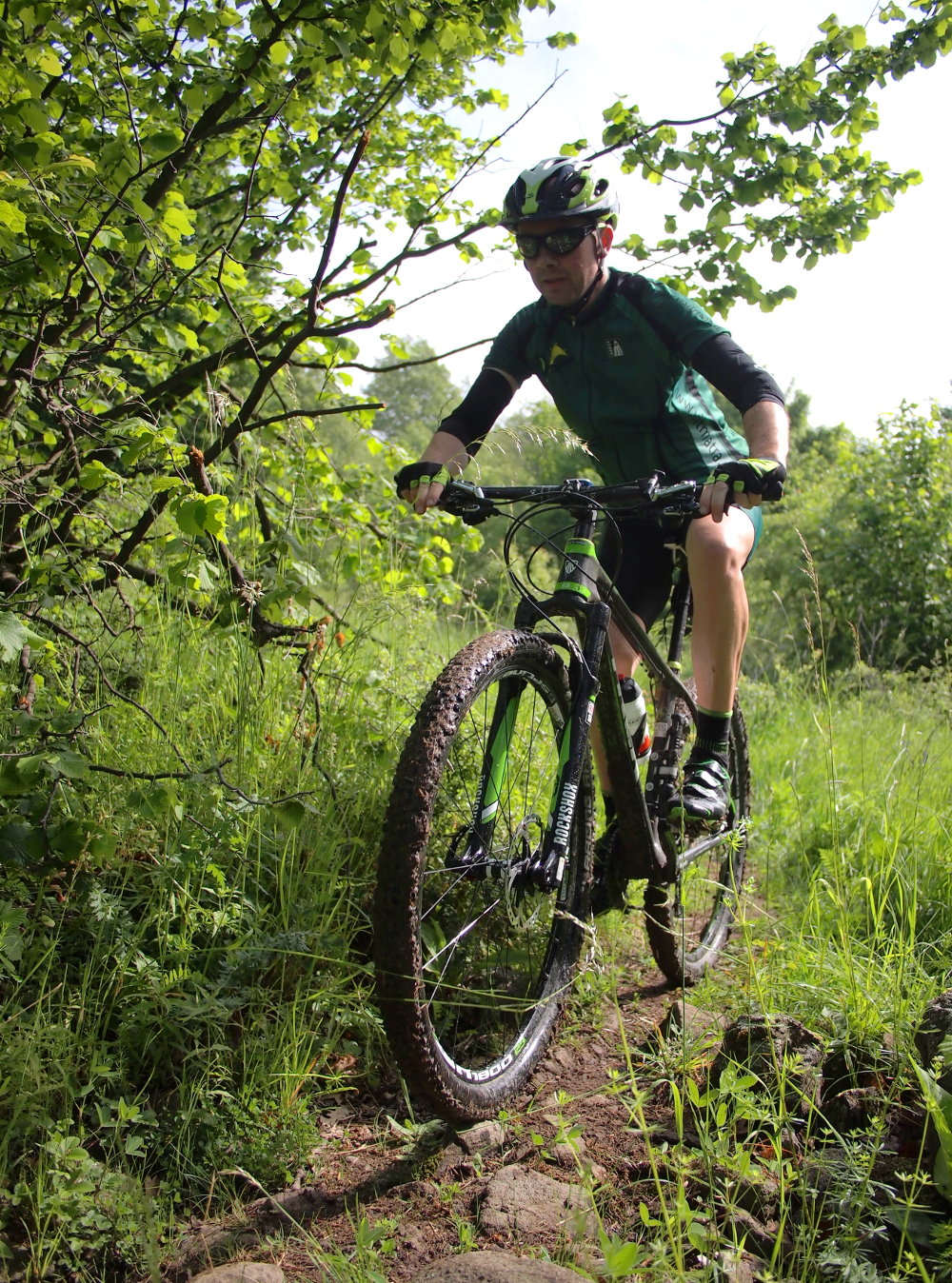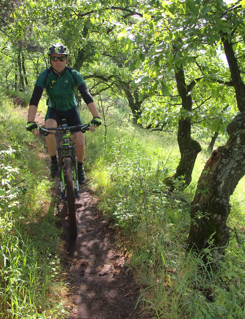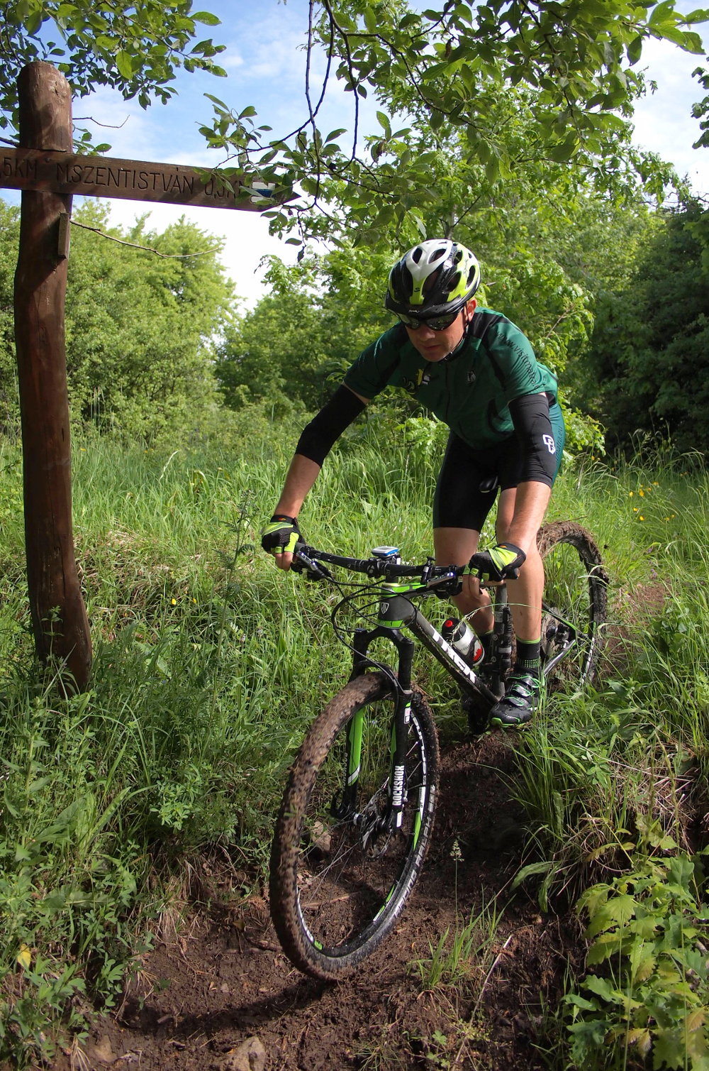 A 964 méter magas, Péter-hegyese csúcsról északi irányba két kisebb kört tettünk, amelyek a Mátra Maraton útvonalában is szerepelnek, majd legurultunk a déli oldalra egy jelzés nélküli erdészeti füves útra. Itt néhány száz méteren belül három őz és egy sas társaságában hajtottunk, közben páratlan kilátásban gyönyörködve Kékestető irányába.