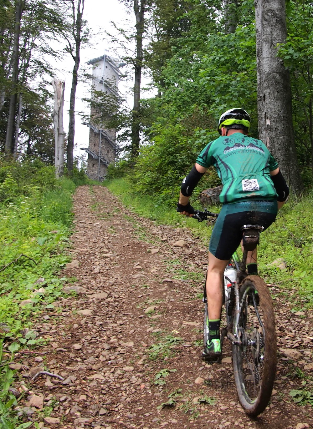 Mi a szállás tőszomszédságában fekvő Vöröskő-kilátó felé indultunk, majd egy lélegzetelállító egynyomtávos ösvényen a sziklagerinc mentén értük el az Ágasvári Turistaházat, majd erdészeti úton a Mátraszentisvánon található Sípark fele vettük az irányt. Innen a kijelölt erdészeti kerékpárutat kipróbálva gurultunk le Galyatető alá, ahova egy meredek, kihívást jelentő ösvényen fel is kapaszkodtunk. Galyatető turista szempontból sosem szűkölködött az infrastruktúrában, az utóbbi években pedig további fejlesztések történtek: a kilátót átépítették, magasították (innen a Magas-Tátra csúcsai is láthatók), modern turistacentrumot létesítettek, illetve az útvonaljelölések is megújultak, gazdagodtak.