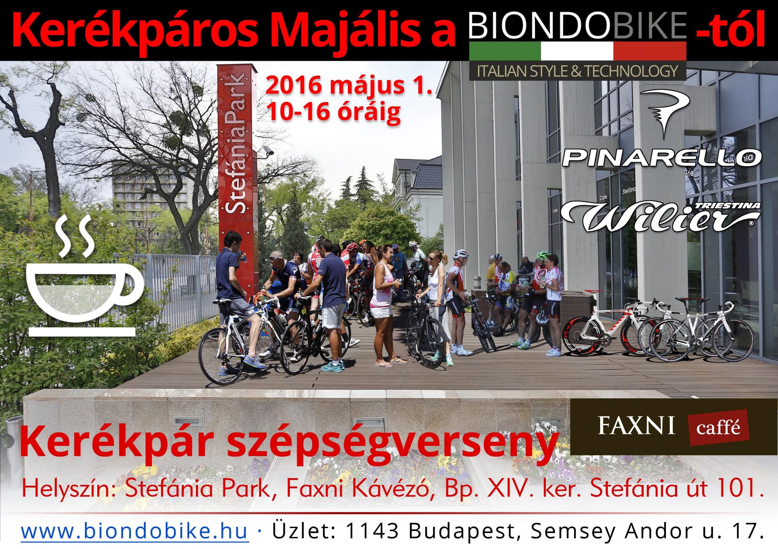 A tavaszváró, Wilier és Pinarello kerékpárok kiállításával egybe kötött rendezvény mindenki számára remek kávézással egybekötött beszélgetést tesz lehetővé a szabadban.