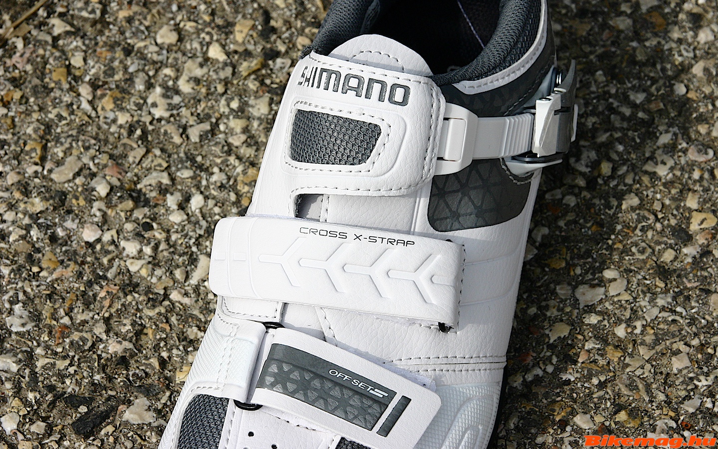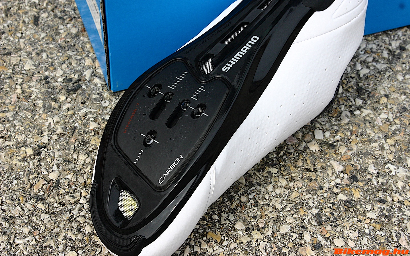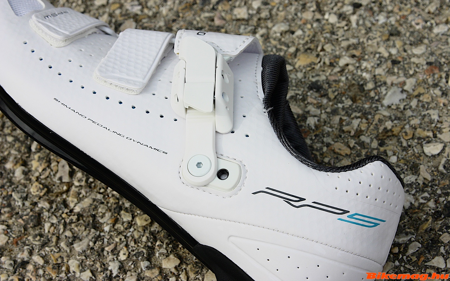 Hát ez is elég „oldschool” kinézetű cipő, bár fehérben azért eléggé elegáns. Ellenben a Shimano cipők kényelme legendás és ennek sem lesz gondja a szellőzéssel, mert a talpa brutál módon lyuggatott. Viszont a karbon alapanyag ellenére csak 7-es merevségű, így inkább hobby sportolásra ideális választás. Csatjának pozíciója állítható, amiért jár a piros pont!