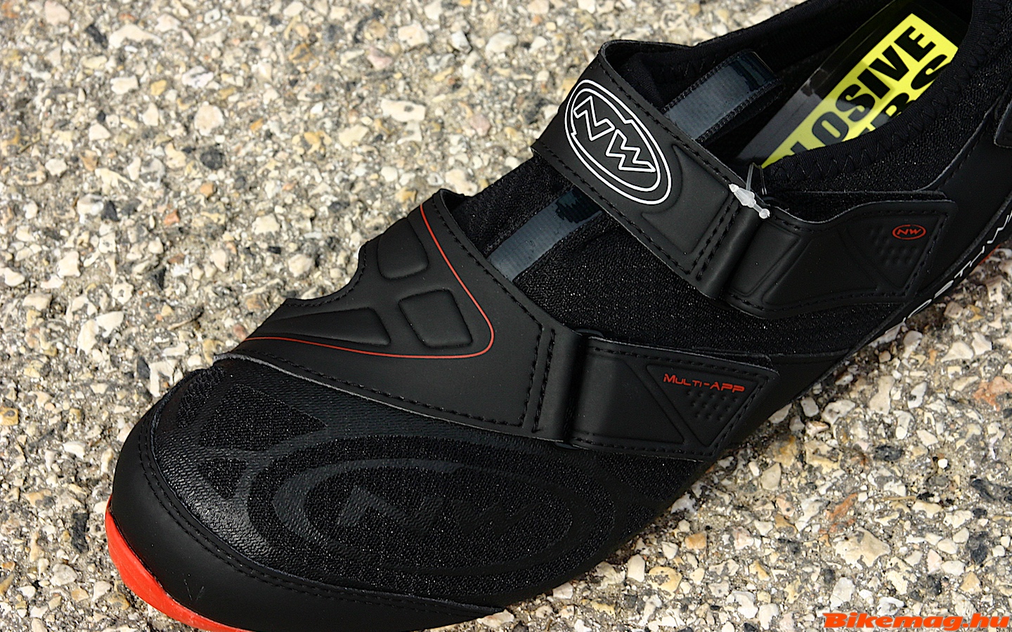 Gyorsan felvehető, az alsó tépőzárat fixen beállítod, a másikat pedig csak behúzod mikor felugrottál a bringára. Nagy fület is varrtak a sarkára ami szintén a felvételét segíti elő. Nincsen nyelve, így kimondottan szellős, gyorsan száradó triatlon cipő.