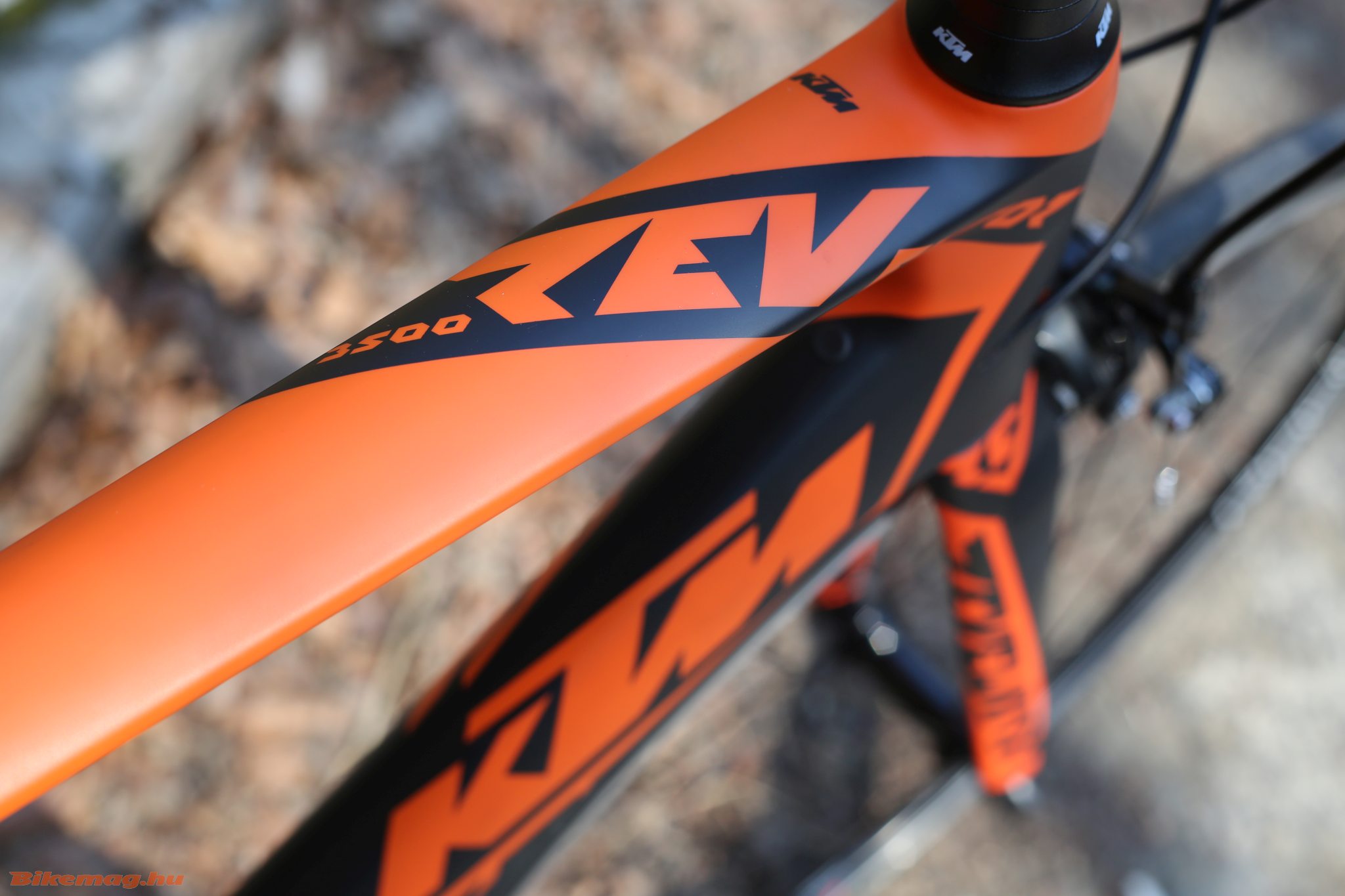 Tavaly teszteltük a 3300-as Revelatort, ami Tiagra szettes volt, és már azt is szerettük, de azóta sok változás történt. Egyrészt kivezették a Tiagrát a karbon vázas országútijaik közül, ami azért is érdekes, mert gyakorlatilag a KTM az első aki belépő szintű szettet szerelt szénszálas gépre. Így most a 11 sebességes 105-ös szett az alap, ez viszont rögtön alkalmas is versenyzésre, már persze nem profi versenyzésre, de amatőrre mindenképpen. Nem is a szett gátolja igazán – bár nyilván más egy 105-ös mint egy Dura Ace – hanem a vázgeometria okán. A „sima” Revelator csőszögei, és csőhosszai eltérnek a profi versenyzésre tervezett Revelator M13 széria adataitól és a váz súlya, layout-ja is más.