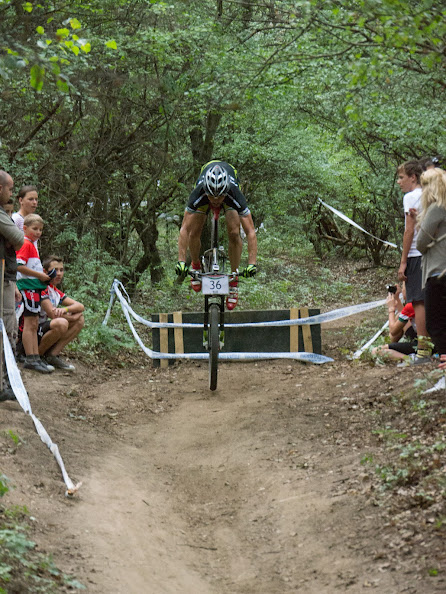 Az első körben a hegytetőig tudtam tartani Parti és Juhász gyors tempóját, mögöttünk a többiek jelentősen lemaradtak. A lejtőn maradtam le Partiéktól, az egyik hajtűkanyarban való kicsúszás miatt. A következő körökben még jobban lemaradtam, a lejtőn való félelem visszavette a teljesítményemet. Már azon gondolkoztam a 3.-4. körben, hogy kiállok, mert 5.-6. helyért nincs értelme kockáztatni a testi épségem. Még a 4. körben le akartam gurulni az itató zónához, hogy ott álljak ki. Sajnos nem tudtam már legurulni, mert a felső ugratóról túl gyorsan érkeztem le. Túl nagy szintet ugrattam be, és első keréken átbukva a bal vállam és a bukó bal oldala csillapította a földbecsapódást.