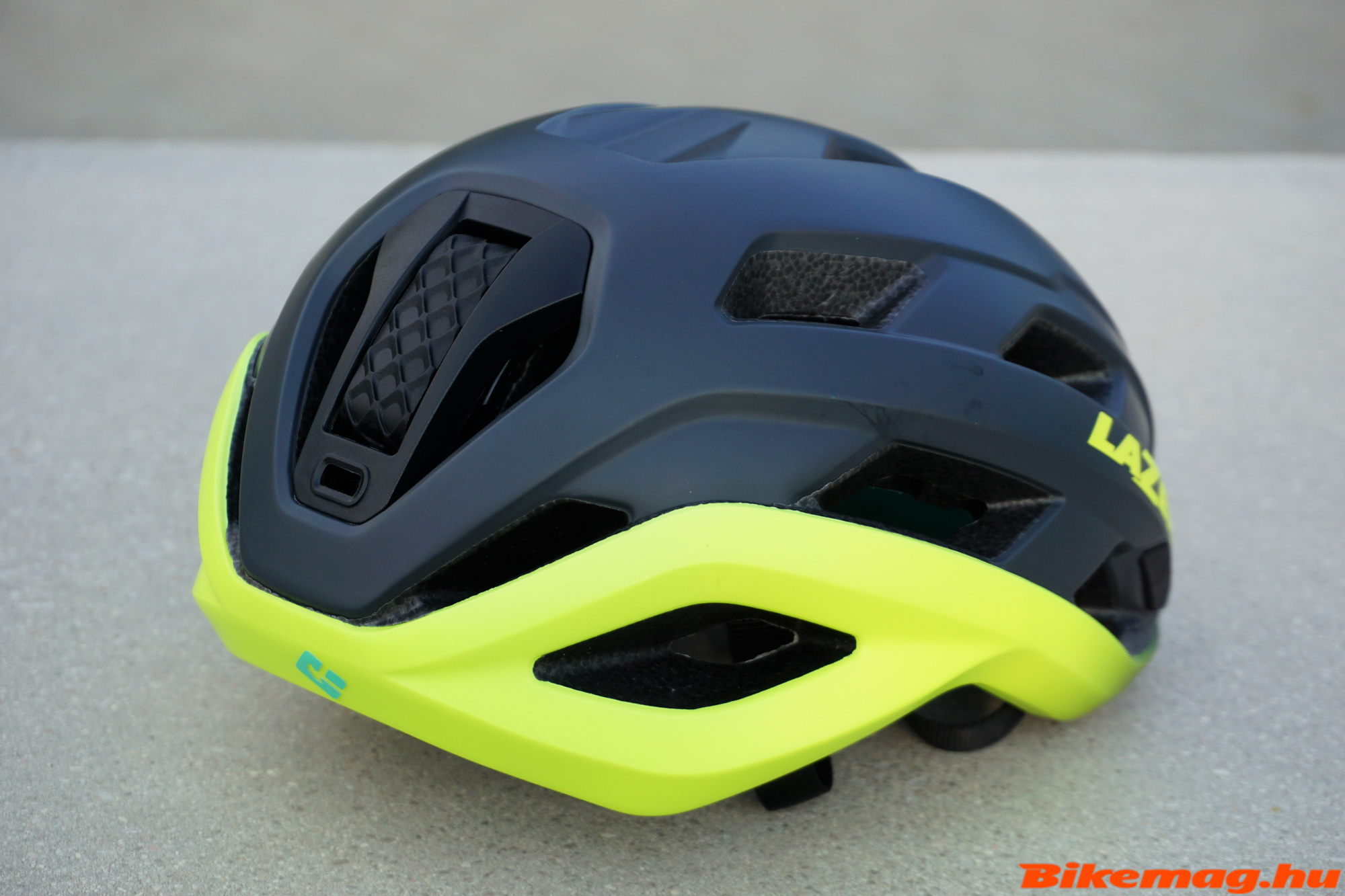 A védelmet nem „akartam” tesztelni, de mindenképpen hiszek a tervezőknek, hogy a KinetiCore extra védelmet jelent a fejnek, ezenkívül szemmel látható, hogy a Strada vastagabb habból van, mint egy átlag sisak, ami már az elemi fizikai ismeretünk szerint is nagyobb védelmet jelent. Elméletileg a Stradán van elöl szemüveg dokkoló, nekem ide nem sikerült betűznöm egyik szemüvegemet se, de nem ez a fejvédő az első amivel így járok, igazából nehéz a gyártóknak az összes szemüveggel kompatibilis dokkolót tervezni. Hátul az állító „gomb” alatt található egy csatlakozó a villogónak, ahová a Lazer saját villogóját lehet felszerelni estim éjszakai felhasználás esetén.