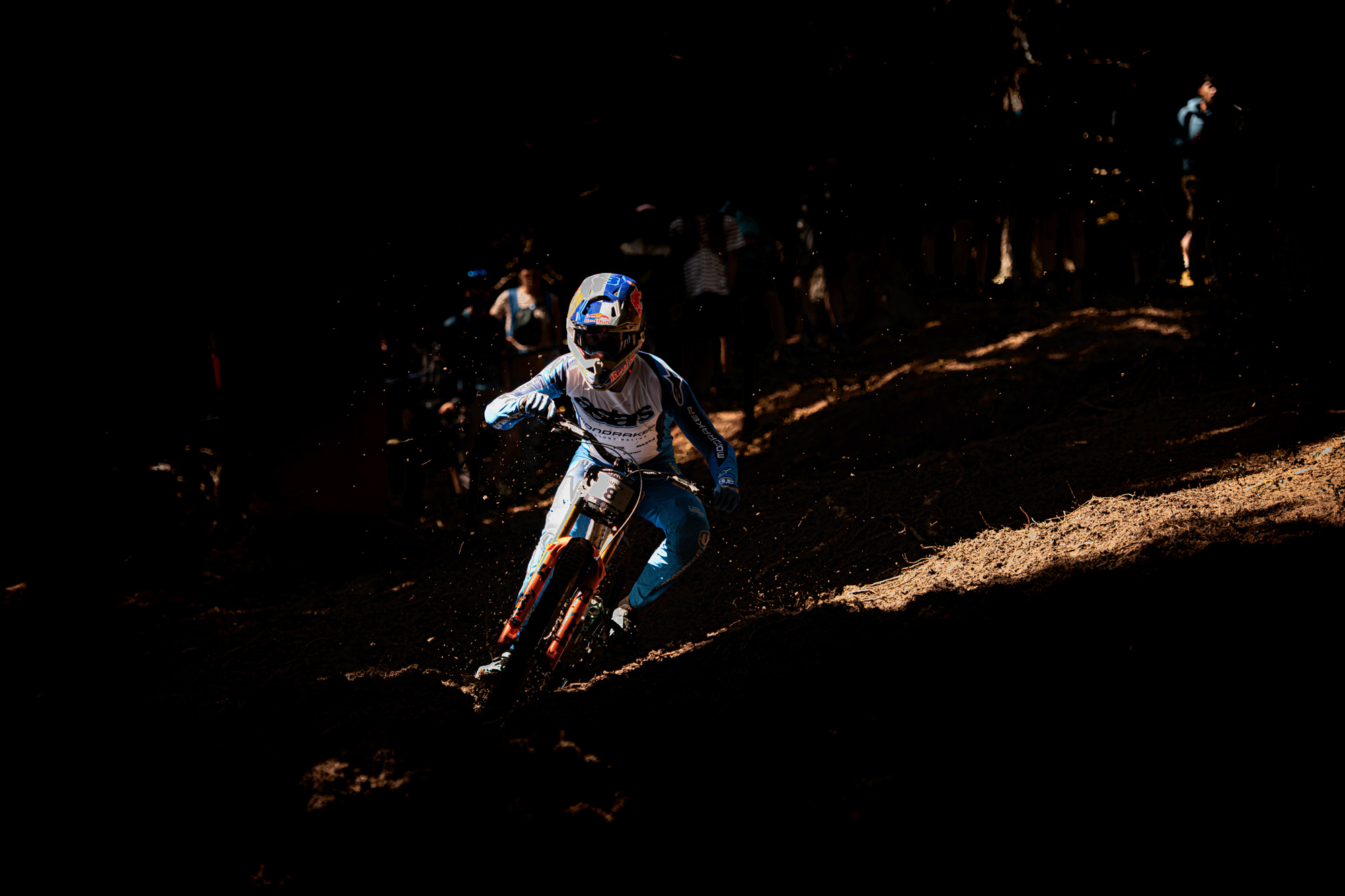 Tegyük hozzá, hogy vannak elég méretes letörések és gapek. Tanácstalan nyomvonal keresés. Sárba ragadás. Ezekkel tudnám jellemezni a pénteket. A kvali egy fajta orosz rulett volt. Aki nem esik el, az bekerül alapon. A mezőny fele esett, de mindenki hibázott. Képtelenség volt végig becsatolva teljesíteni az egész pályát. Ezért jó páran váltottak flat pedálra. Ez elég ritka, de itt most előnyt jelentett, hogy nem kellett a ki- és becsatolással szenvedni. Kvali 1 futam. Nagy nevek nem kerültek be, mint például Goldtsone, Vergier, Cabirou, Newkirk, Myriam Nicole, Luca Shaw, Daprela, Brosnan, Hatton, Gwin, Danny Hart, Illes, Zwar. Ők mind elestek. Sokan köztük egy ominózus helyen, pont ahol én álltam.