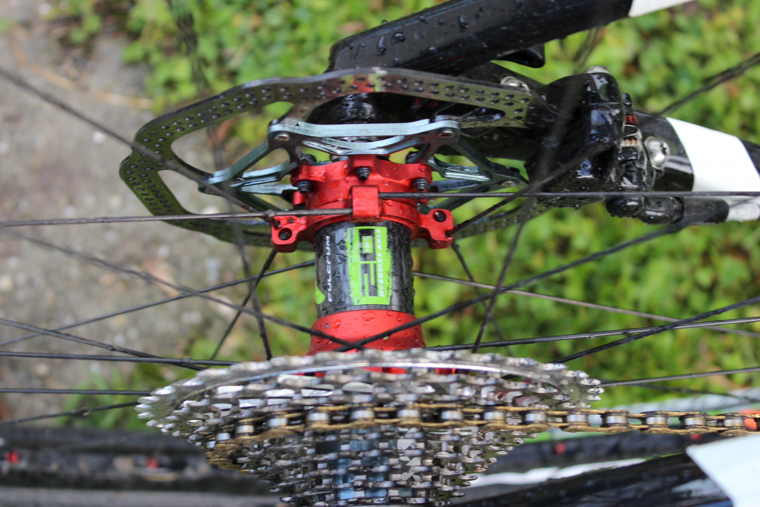Buruczki Szilárd 2012-es Big Nine versenygépének nézegetése közben, a szuperkönnyű karbon Ritchey alkatrészeken kívül az tűnt fel, hogy itt bizony elöl csak egy tányér van. Méghozzá az is 36-os, a hátul 11-36-os lánckeréksorhoz. A lánc leesését egy konzolos rögzítésű MRP láncterelő hivatott meggátolni.