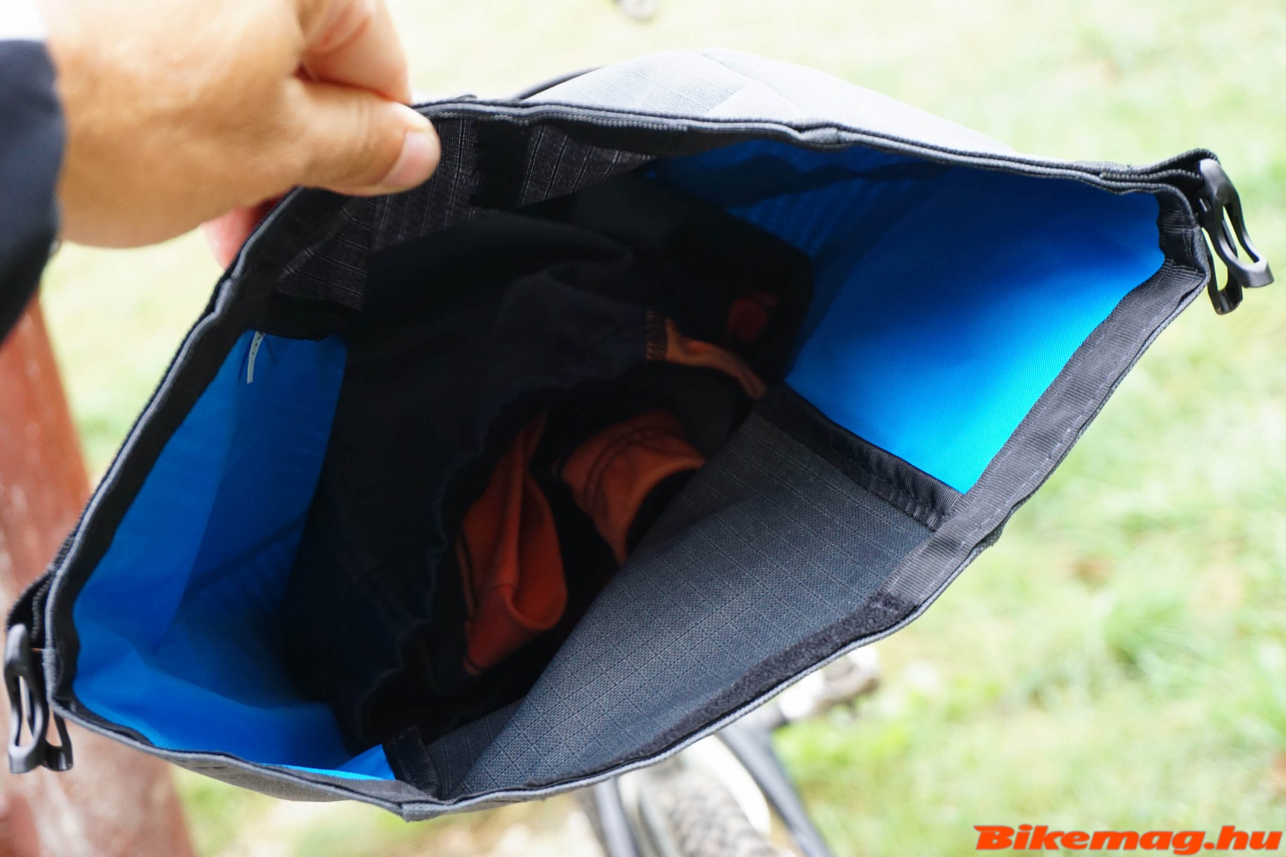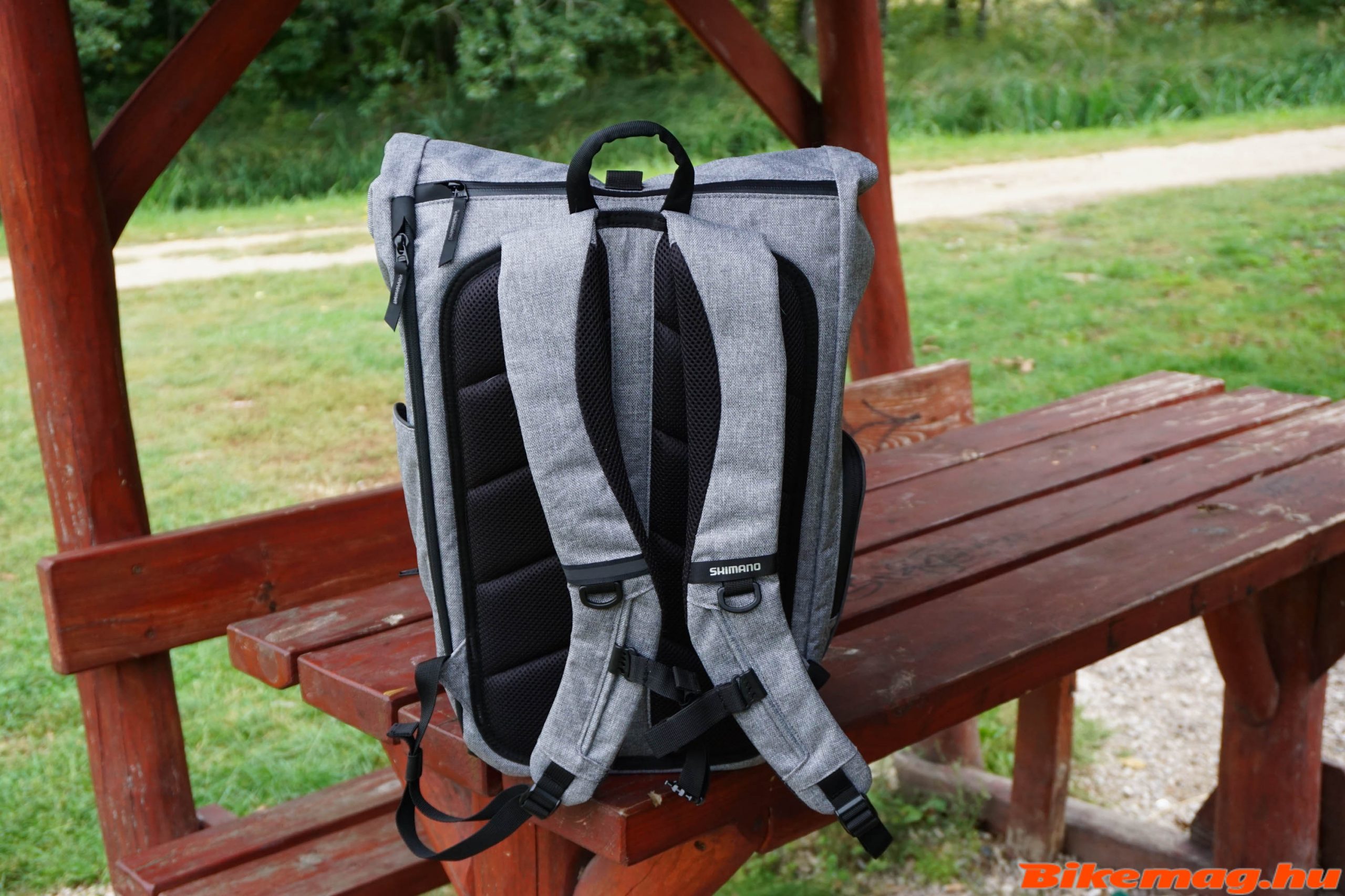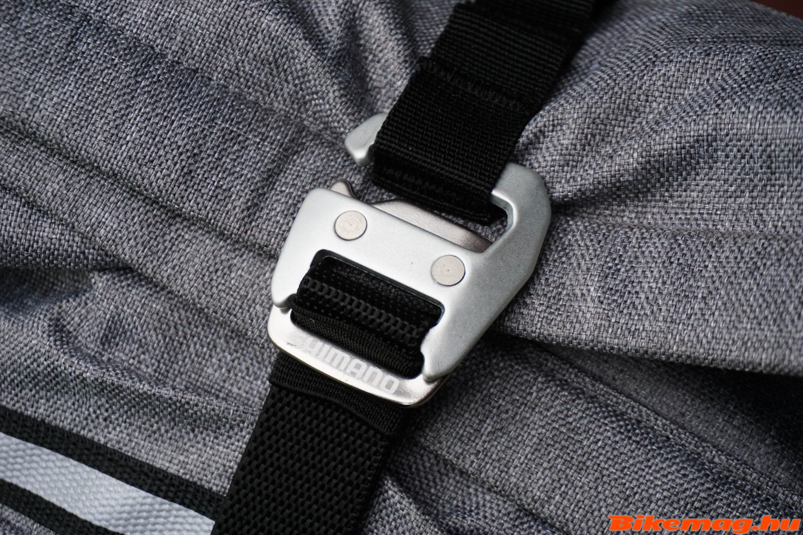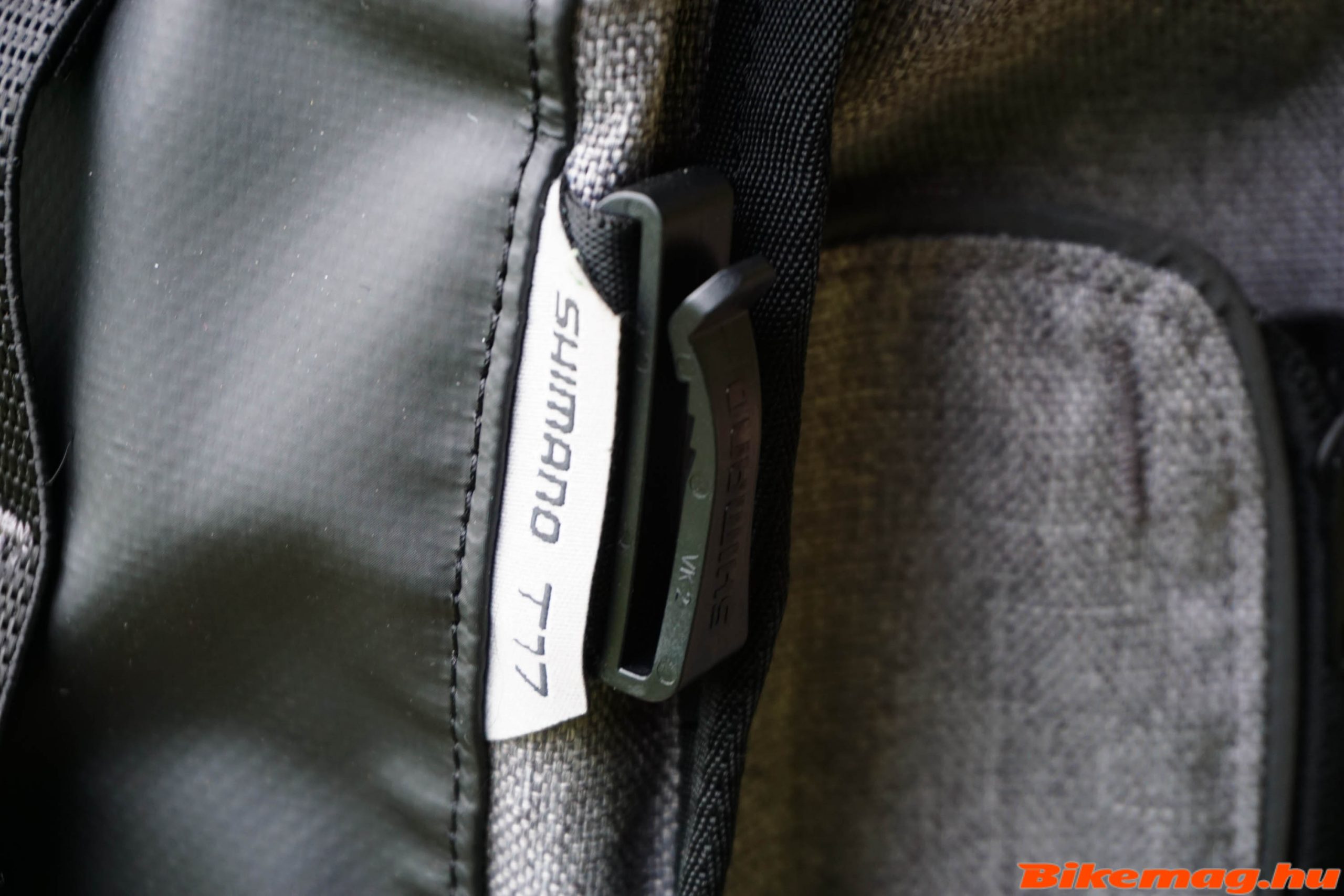 Egyből egy „Hűha!” kategóriájú táskával kezdenénk. A Shimano kiegészítői mindig is a csúcskategóriát képviselték, a városi felhasználásra készült Tokyo is ezt a szintet képviseli. Nem csak megjelenésében prémium termék, hanem technikai tudásában is igazi nyálcsorgatós darab. Anyaga vízlepergető, de tartozik hozzá egy fluo zöld színű esőhuzat is, amivel rossz látási viszonyok között is biztosan észrevesznek az autósok. A Shimano Tokyo űrtartalma 17 liter, de a jól átgondolt zsebeknek, rekeszeknek, elrendezésnek köszönhetően nagyobbnak érezhetjük. Van külön puha bélésű zseb a laptopunknak, tabletünknek, a táska oldalába kulacs, üveg vagy termosz is rakható. A nagy rekesz kialakítása mindenképpen említésre méltó, felülről egy mágnes segítségével zárul a táska, amit visszahajtva egy kampós csattal tudunk teljesen zárni, egyszerű megoldás és biztos nem fog kinyílni egy cipzár és pakolni is könnyebb bele, viszont ez a rekesz oldalról is nyitható, így onnan is ki tudjuk venni a dolgainkat. A táskán található még sisak tartó, pontosabban két kis kampó, amibe be tudjuk akasztani a fejvédőnk pántját, mellyel az a táskára rögzül.