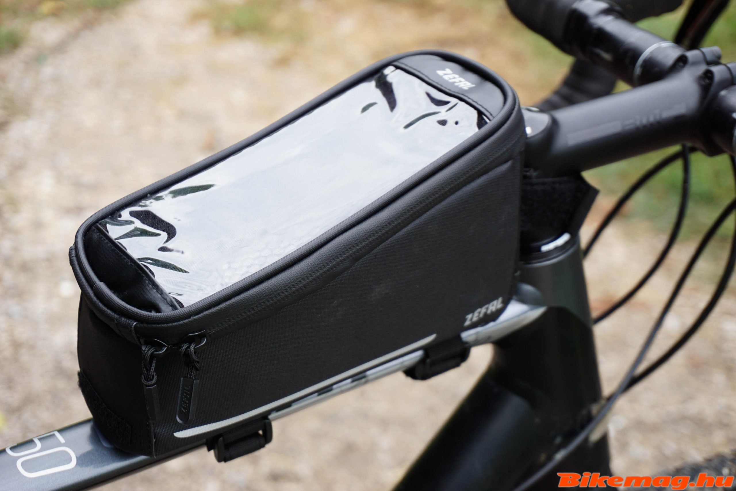 Egy táska, ami lehetővé teszi, hogy bringázás közben lássuk a telefonunkat és az alapvető dolgainkat is magunkkal vigyük, ezt tudja a Zefal Console Pack T2 felsőcsőre szerelhető táska. A felső rekeszben elhelyezhető a mobilunk, amit még nyomkodni is tudunk (bár nem ajánlott) menet közben, a táska oldalán található nyíláson keresztül pedig a headsetünk vezetékét tudjuk kihozni és így akár szabad kezekkel telefonálni is tudunk kerékpározás közben. Az alsó rekeszben pedig elfér a kulcsunk, a belső, a szerszámkészlet és még pár zselé vagy müzliszelet is ezek mellé.