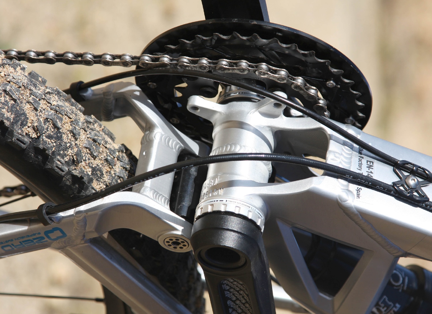 A váz közepe és hátulja, már ránézésre sem egy egyszerű eset. Forgáspont hegyekbe, himbakarokba ütközünk lépten nyomon. A váz valójában egy virtuális forgáspont rendszerre épül, tehát a váz hátsó háromszöge nem egy db fixen elhelyezett forgáspont mentén mozdul el egy körív mentén, hanem a hátsó tengely egy majdnem teljesen egyenes utat ír le a berugózás során, és közben. E rendszernek több előnye is van. A leggyakrabban hangoztatott előny, hogy ezzel a felépítéssel nagyrészt ki lehet küszöbölni a pedálozás során fellépő pogózást, – erre utal a Zero elnevezés is- valamint a hátsó kerék fékezése sem hat olyan mértékben a berugózásra, mint ahogy az az egy-forgáspontos rendszereknél tapasztalható.