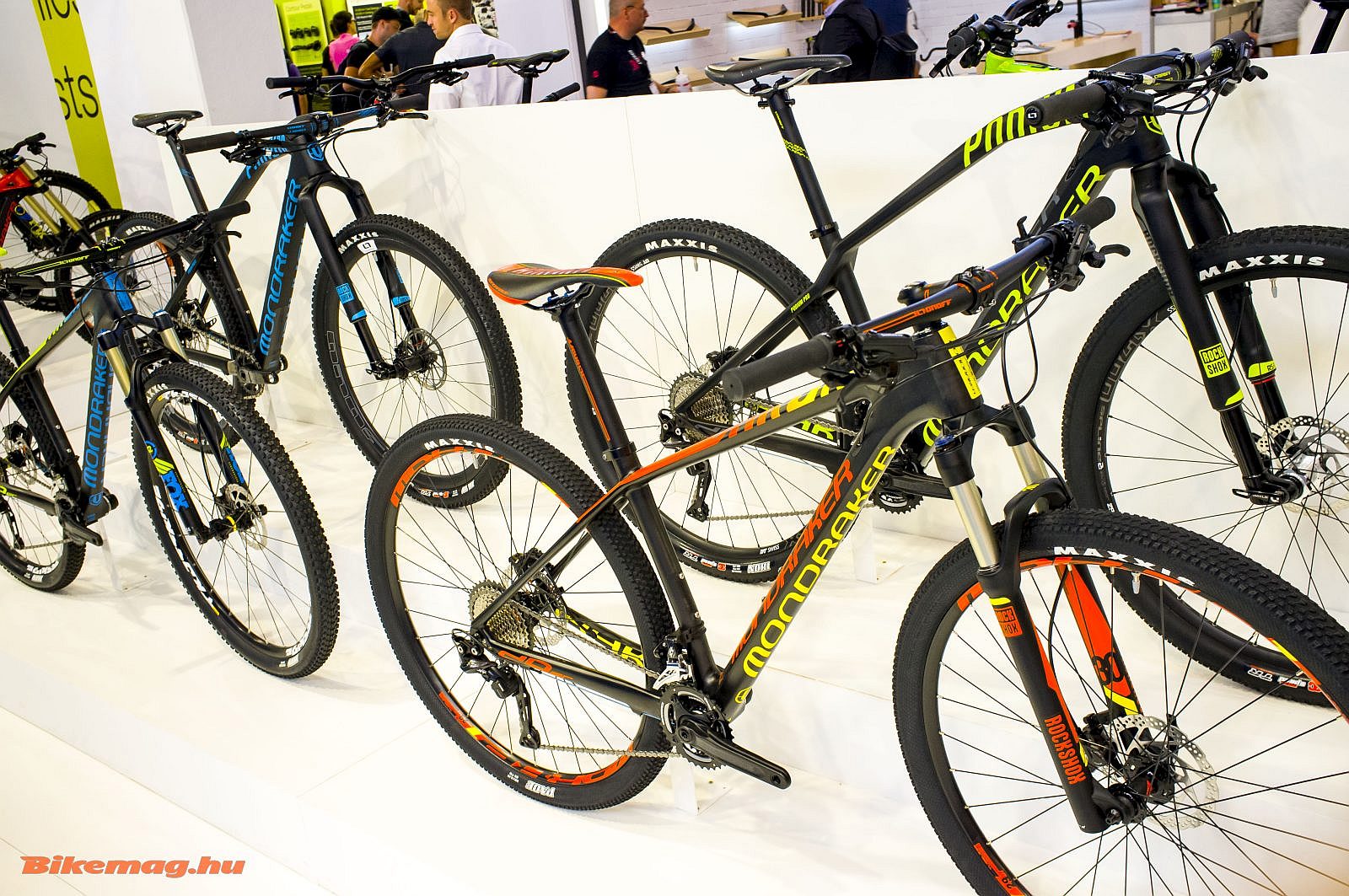 A kisebb rugóutas kategóriákban is figyeltek egyébként a váz védelmére, például a Dune-nál vagy a Foxy-nál is ízléses, levehető lapocskák védik a rugóstagot. A Foxy XR volt a Mondraker első karbon fullyja, ezek a gépek továbbra is etalonnak számítanak az all-mountain kategóriában. Új, vidám színeket találunk a palettán, narancs, sárga, kék, ezen kívül a Foxy nagyjából maradt a régi, ami nagyon jó, azon nem kell évente változtatni.
