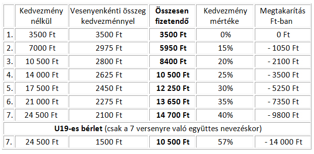 A táblázatból egyértelműen látszik, hogy a résztvevők minél több Challenge eseményre jelentkeznek, annál nagyobb kedvezményt érhetnek el.