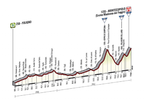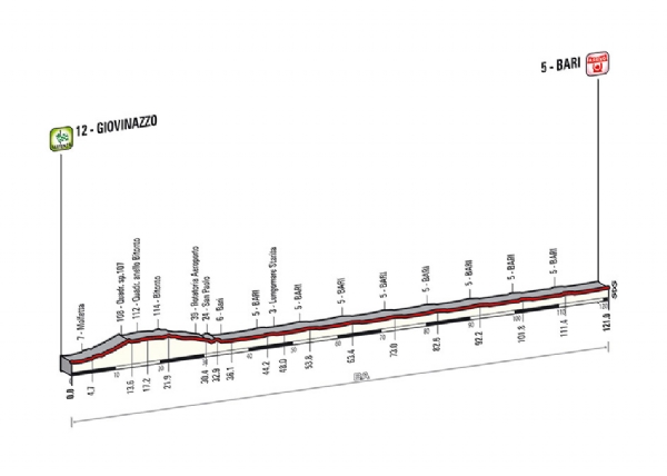 A hosszú transzfer okán a 4. szakasz lesz az egyik legrövidebb a maga 121 kilométerével. A rövidke „pihenő” után három 200 kilométer feletti szakasszal keményítenek a szervezők: 4 hegyi befutó (Viggiano, Montecassino, Montecopiolo, Sestola) foglal szendvicsbe egy sprintereknek illő etapot.