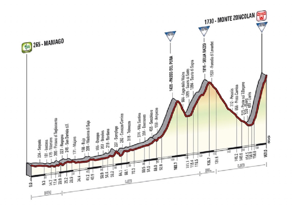 Ha még itt sem dőlt volna el a verseny, a 20. etapon másszák meg a híres Monte Zoncolant, hogy a záró, Triesztbe vezető 169 km-es szakaszon már az ünneplésé és a leggyorsabbaké legyen a főszerep június 1-jén.