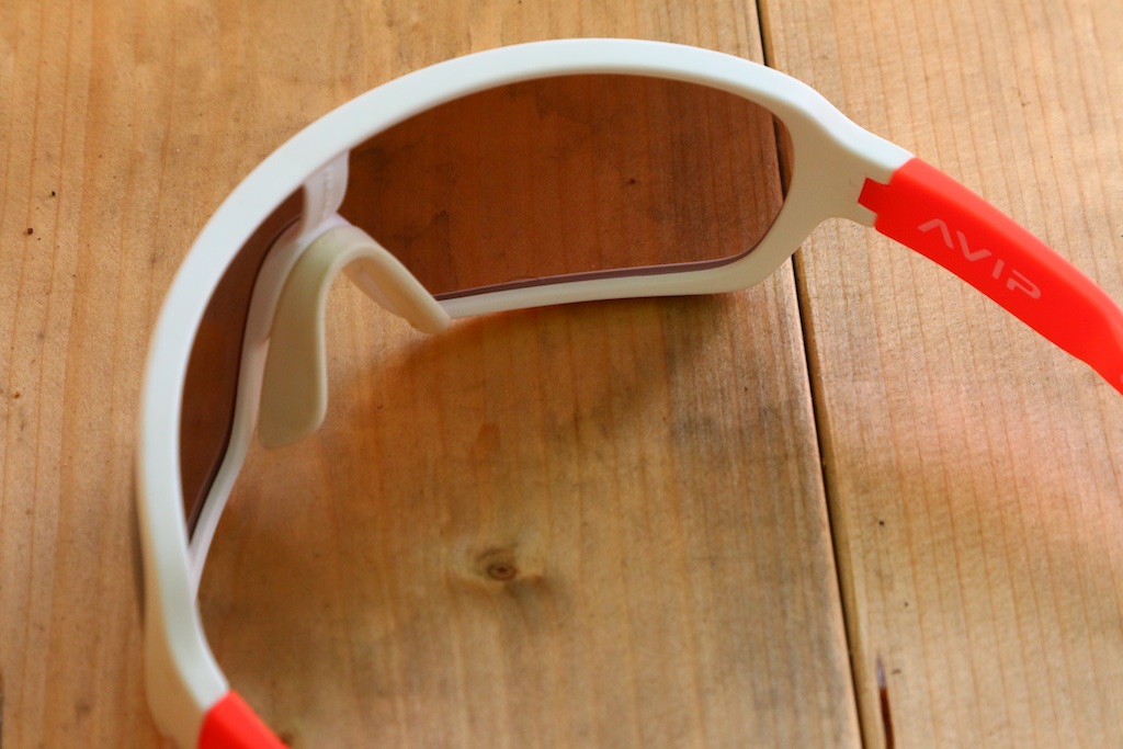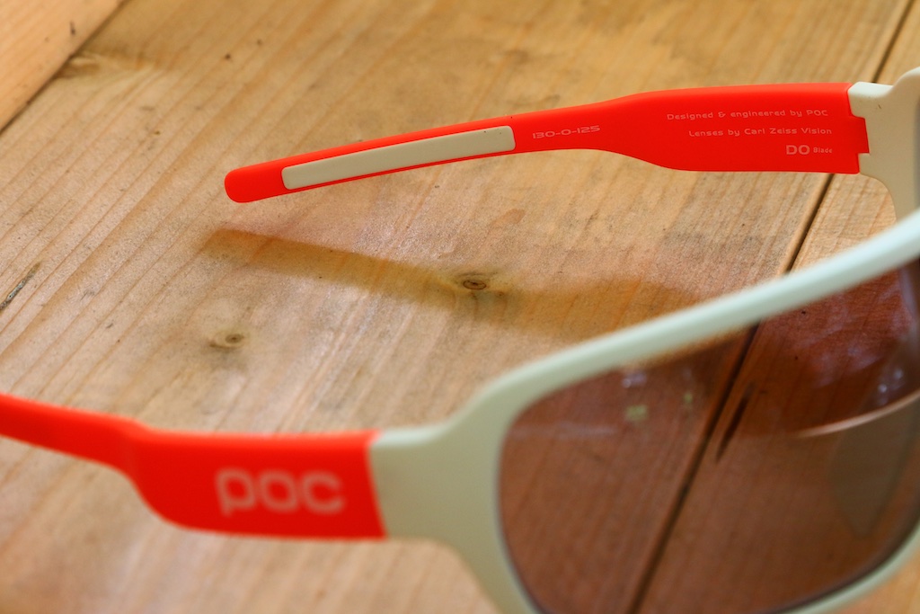 A narancs fehér festés nem csak a Bikemag színvilágával harmonizál, hanem manapság trendi is, sőt az AVIP festés a láthatóságot is javítja mert nappal is feltűnő. Igazán ütőssé viszont úgy teheted, ha felveszed hozzá a DO Blade AVIP napszemüveget, amit utcán is simán használhatsz. Ez is ugyanolyan fehér/narancs festésű, tehát harmonizál a sisakkal. Hivatalosan hydrogen white/zink orange a megnevezése. A keret grilamid alapanyagú a szárak végén hidrofóbikus gumírozást találsz, és ugyanebből készül az orrgumi is. A violet színezetű polikarbonát lencse páramentesítő bevonattal rendelkezik, felül szellőzőnyílásai vannak, és nagyon kontrasztos képet ad. Ezen nem is csodálkoztam hiszen a világhírű Carl Zeiss készíti a POC-nak.