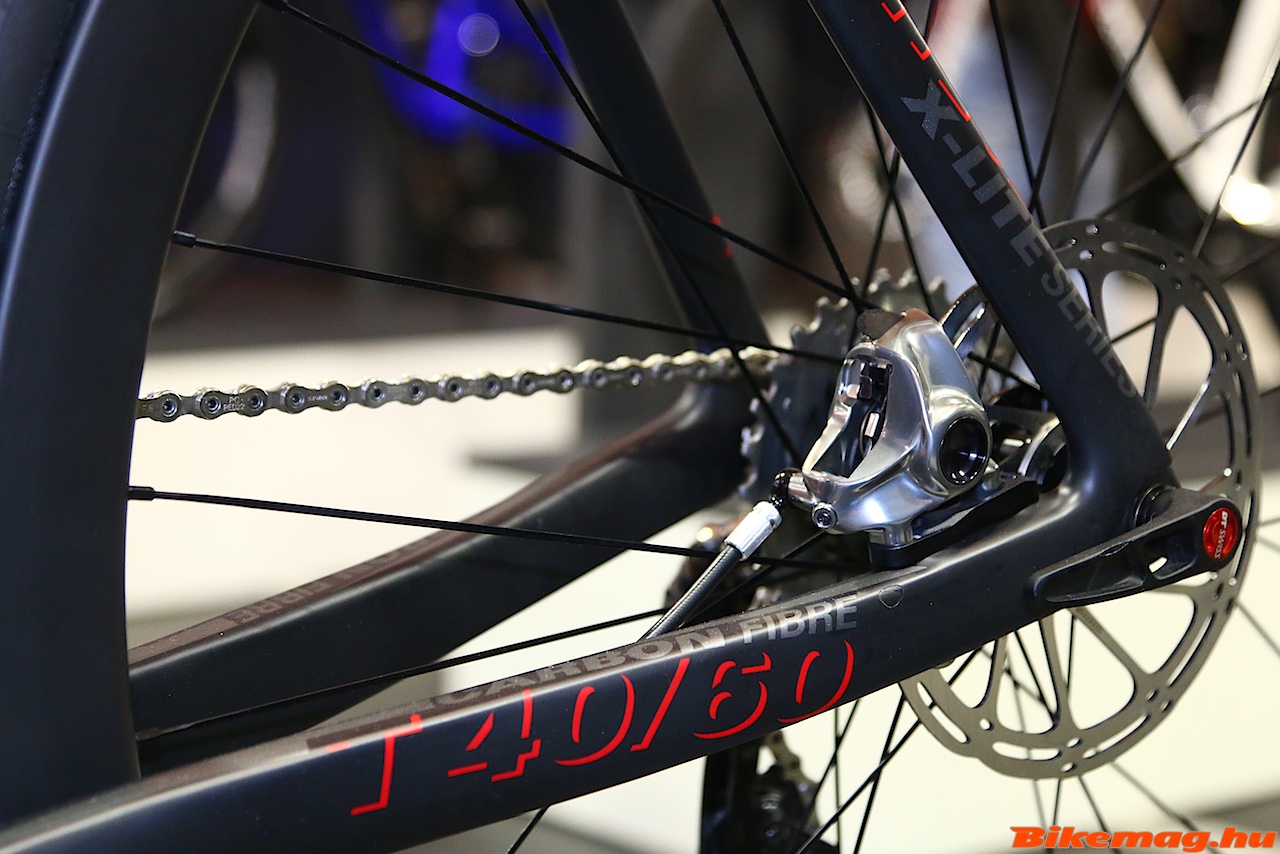 Itthon viszont egyelőre az országúti gépeik a legkelendőbbek, amit könnyen meg lehet érteni, hiszen ha megnézzük a képen látható X-Lite Team 4000-es modellt, akkor több dolgon is meg lehet lepődni. Az egyik, hogy már az új Dura Ace szett található rajta, ami kiállítás szinten is alig pár modellen volt látható. Ennél viszont sokkal meglepőbb a 6,1 kilós súlya, és ha megnézzük mellé a 4090 eurós vételárat, akkor tényleg nehéz ennél jobb vételt találni ma a piacon! A váz 800 gramm alatt van, és a 140 rétegnyi karbon szövetből álló villa is mindössze 295-öt nyom.
