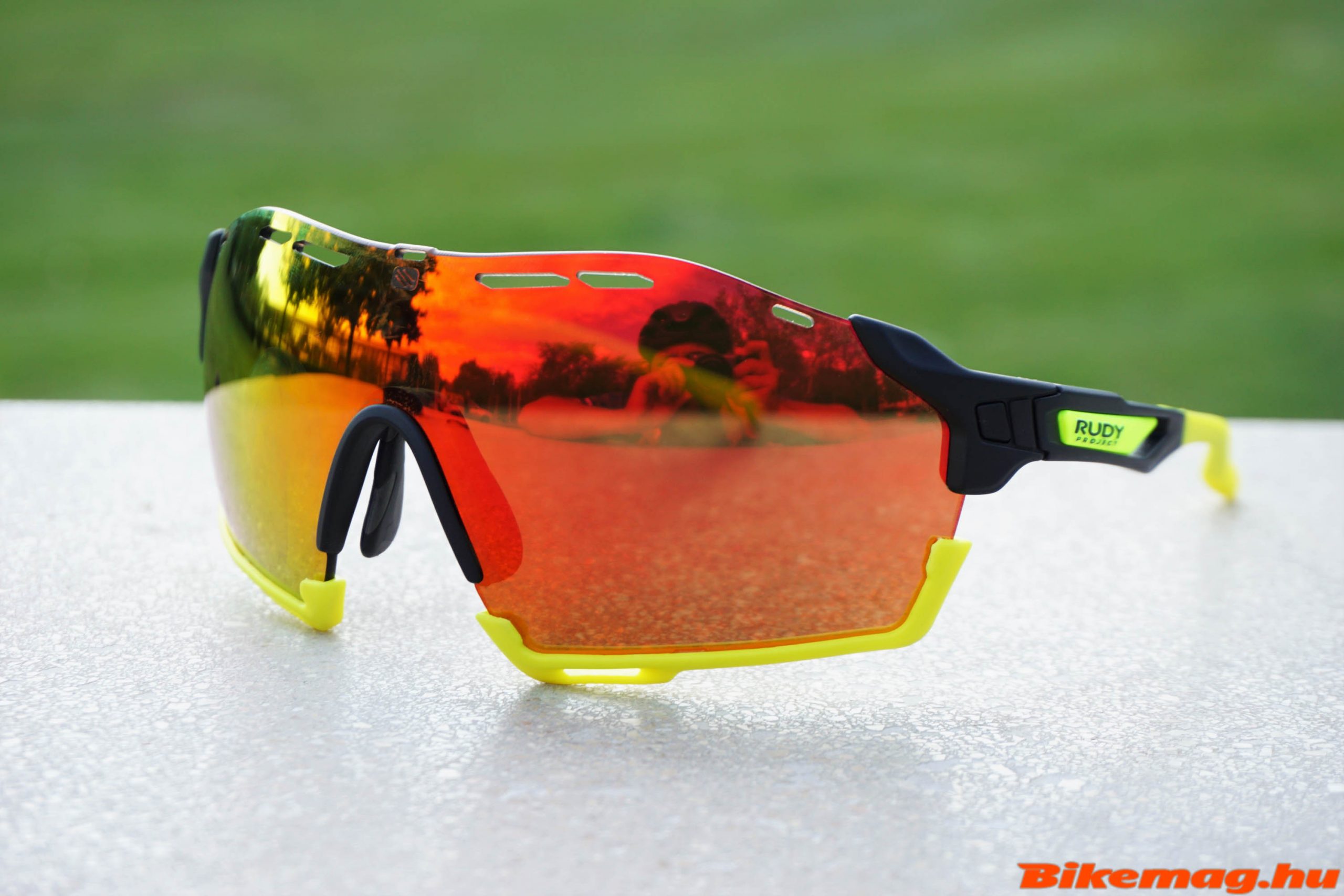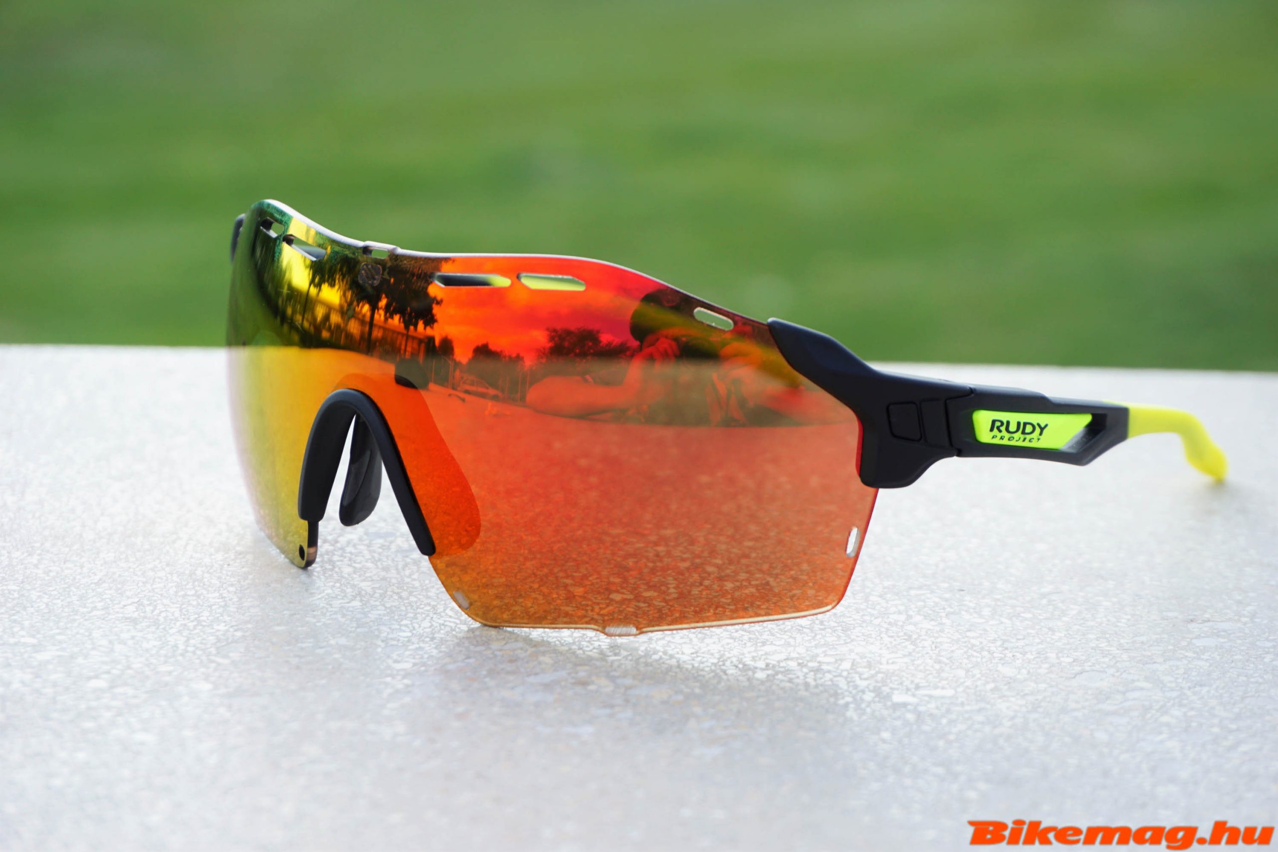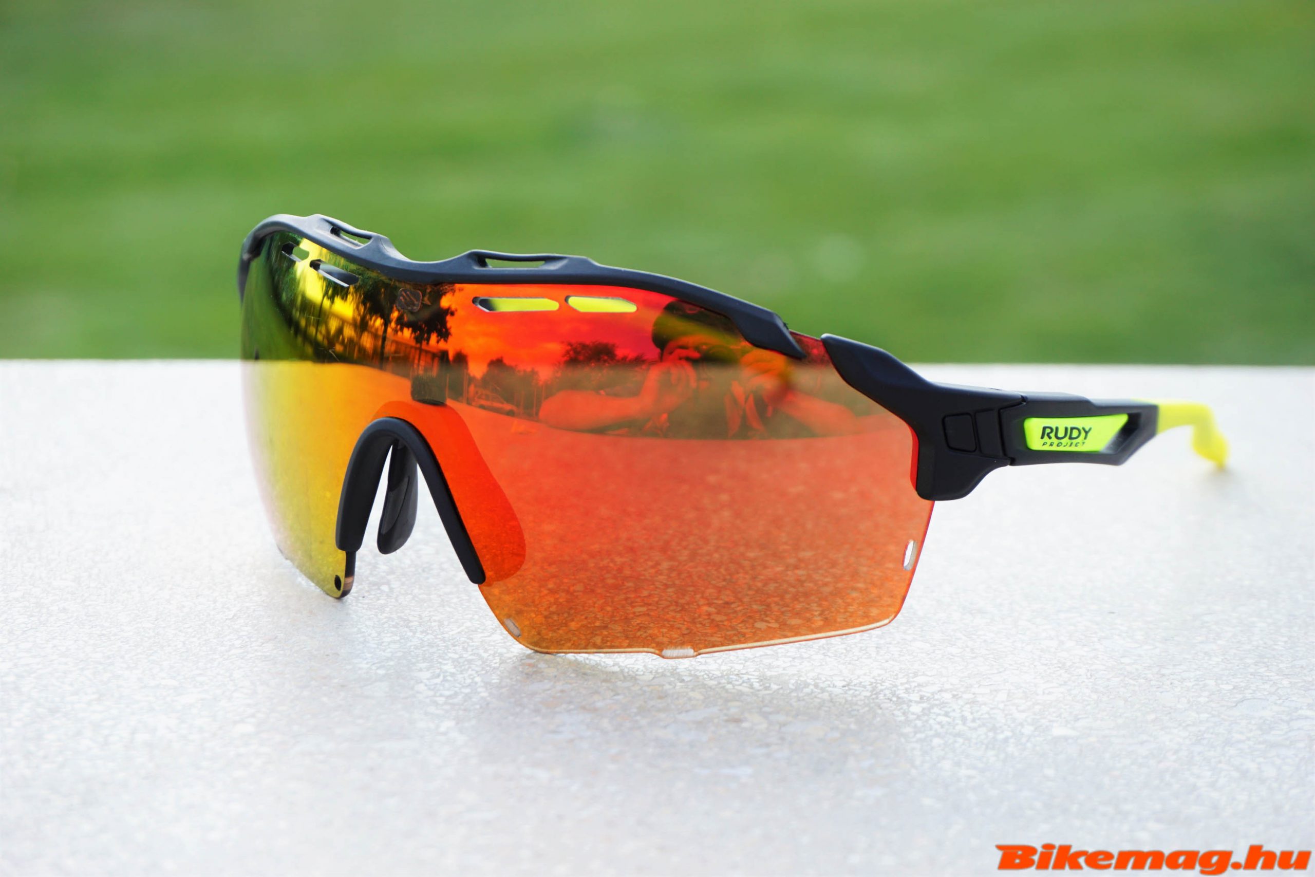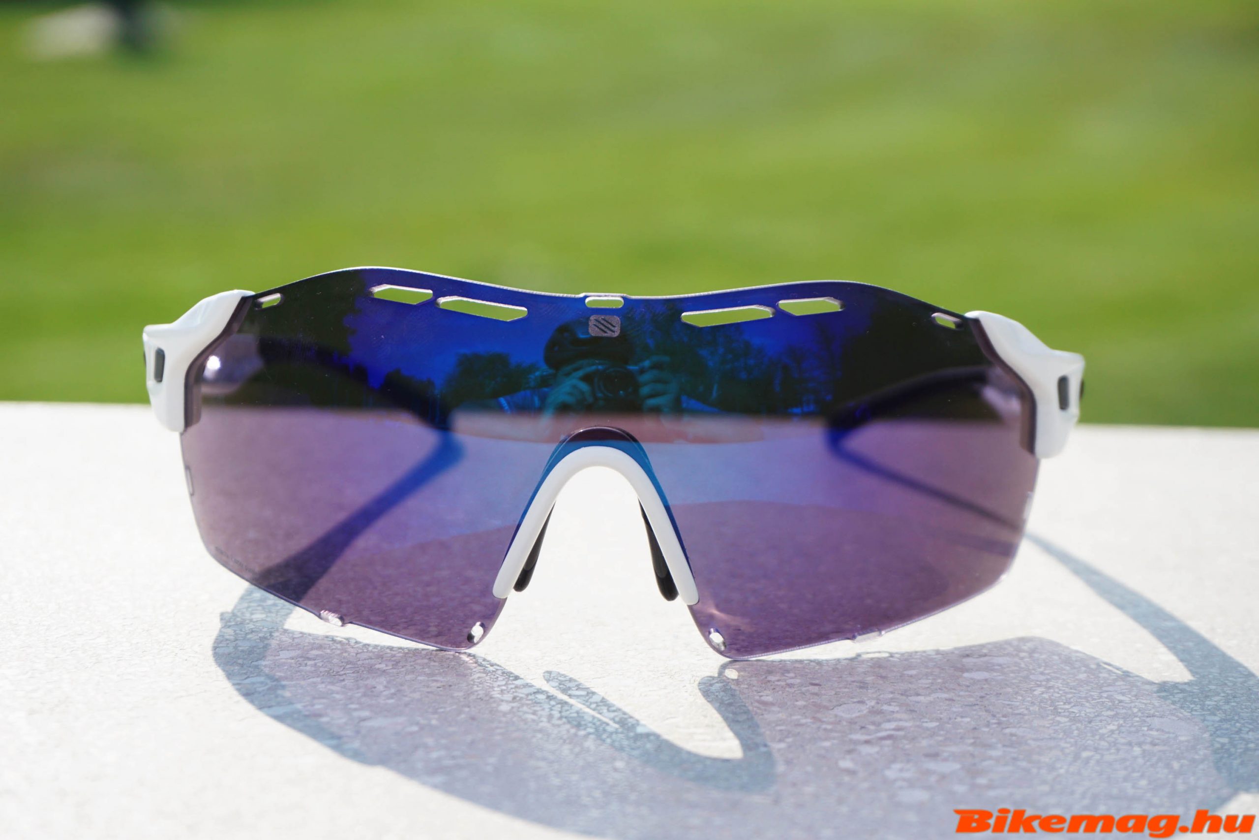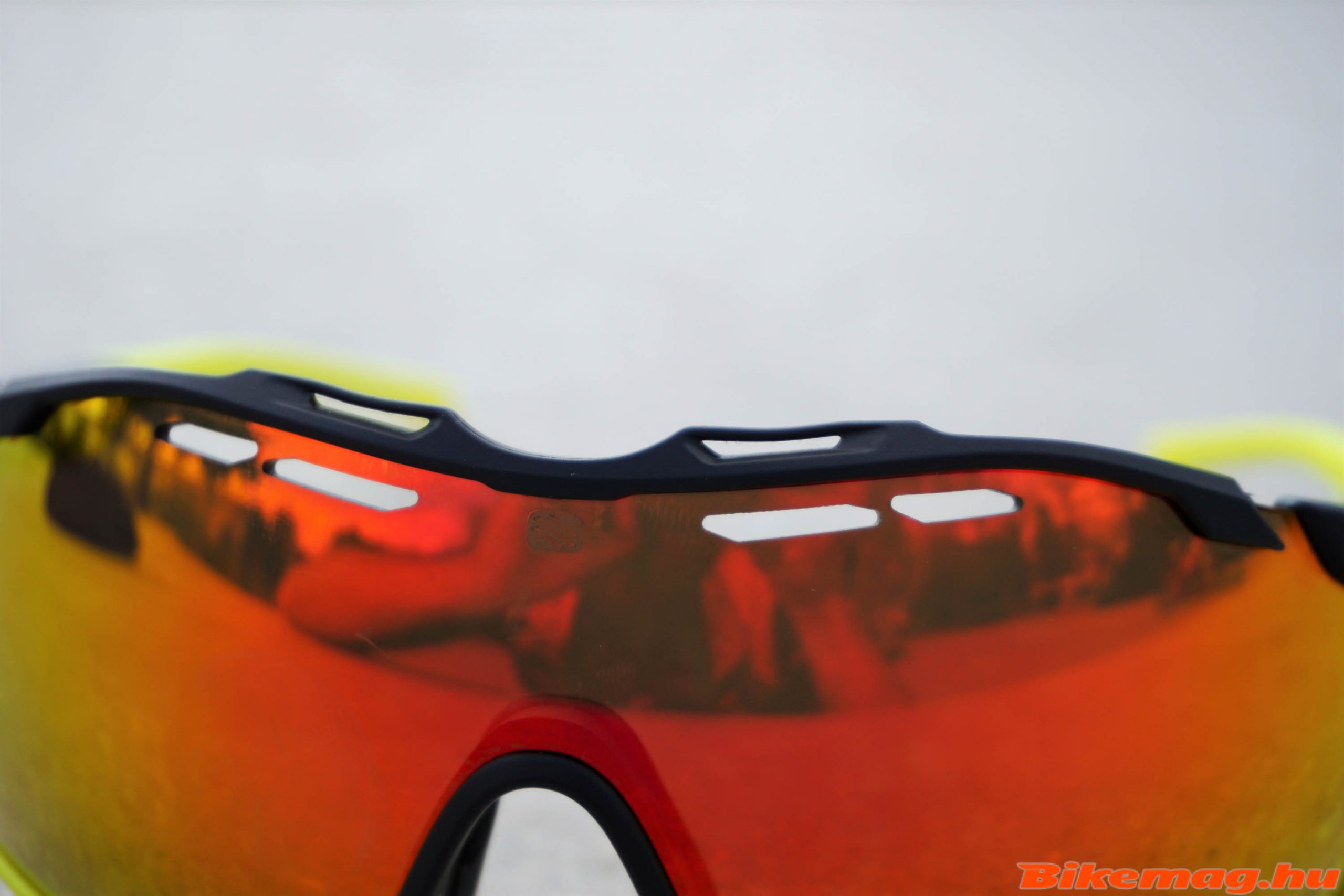 -Szellőzők a lencsén és a szárakon. A Rudy Project Power Flow kialakításnak hívja a lencsén és a szárakon található szellőzőnyílásokat, amik abban segítenek, hogy ne izzadjunk a lencse alá annyira, illetve nehezebben párosodjon be.