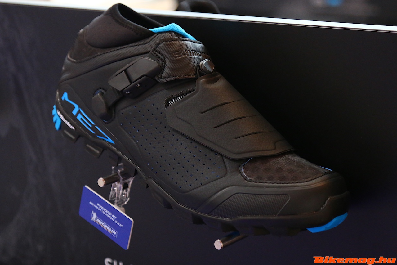 Mindezek amikről eddig szó volt nagyon szép dolgok, de igazából szerintem a legnagyobbat cipő fronton durrantotta a Shimano 2017-re. Majdnem a teljes palettát lecserélték, és az eddigi konzervatívabb irányok után most mertek a 19-re lapot húzni! Egyik kedvencem az RT5-ös SPD stoplival használható belépő szintű cipő. Ok a design már felbukkant egy-két márkánál, de elérhető árban sosem láttam ezt a kinézetet. A három tépőzáras üvegszálas talpú cipő jó túrázáshoz is, de fitnesz bringára is el lehet sütni.
