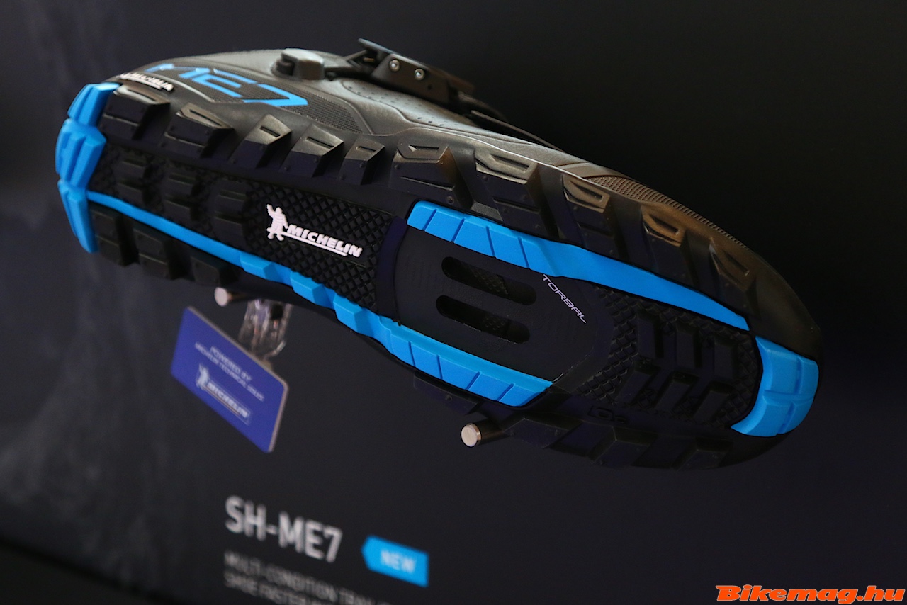 Az ME7-es az enduro szakág kedvelőinek készül kék betétekkel, egy mikro reteszelésű csattal, fűzővel és erős fűző takaróval. Talpa Michelin-nel közös kooprodukció és Torbal kialakítású, így a Shimano saját skáláján 8-as merevségi indexű.