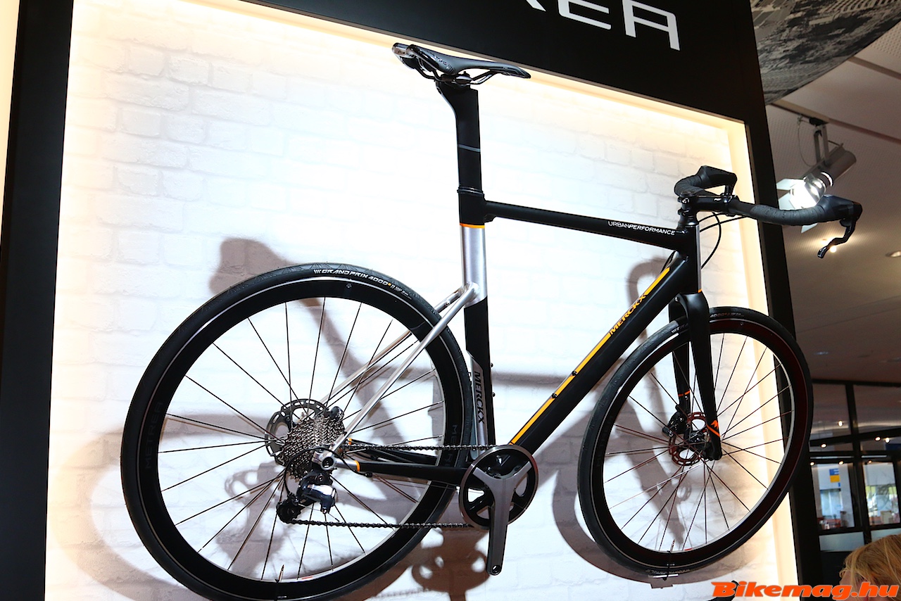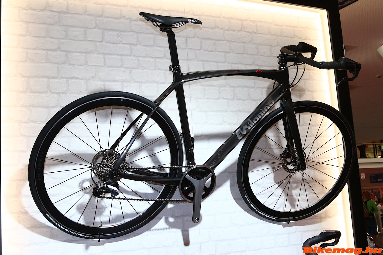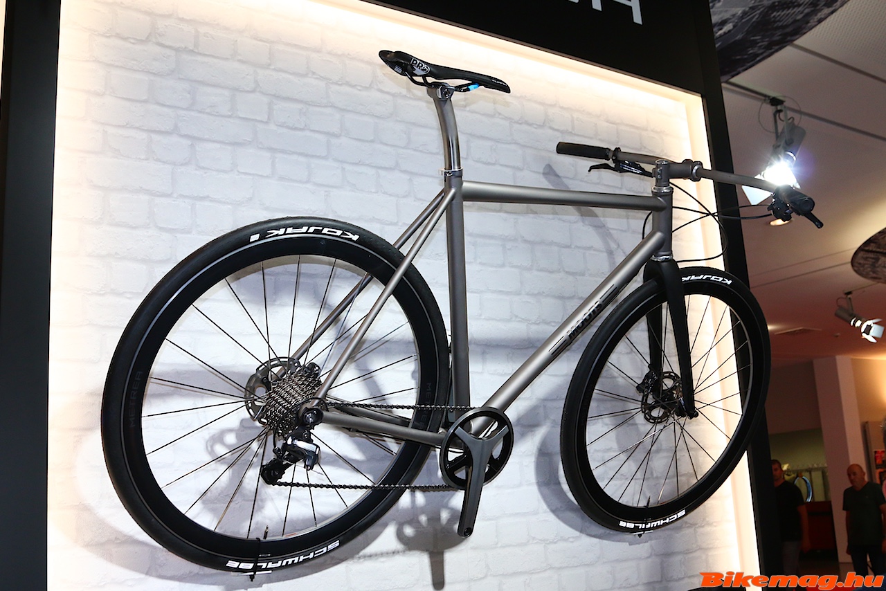A legnagyobb hype pedig minden bizonnyal a városi/fitness Metrea szett körül volt. A standon talán nem is volt belőle kirakva, mert konkrétan a kiállítás egész főbejáratát eltorlaszolták azokkal a Metrea oszlopokkal amin a világ legjobb bringagyártóinak tanulmány vagy boltban is kapható bringái sorakoztak. Döbbenet volt látni a Cipollini, Merckx, Colnago karbon gépeket Metreával. Mikor tavaly láttam a standjukon egyszerűen nem hittem el, hogy széria lesz belőle, még akkor sem, amikor kijött a sajtóanyag róla. Most pedig itt pihen mellettem a nagy Shimano biblia, és benne figyel a 11 sebességes szimpla vagy dupla hajtóműves alkatrészcsalád, amit nem csak sima egyenes kormányos hidraulikus fékkarral vehetsz majd meg, hanem a fura alakú és a H-bar kialakítású kormány végébe dugható BL-U5010-essel is! A Moots titán gépen brutál jól nézett ki, de akár De Rosa Milanion, vagy a Merckx Urban Performance-on is meg tudnám szokni…