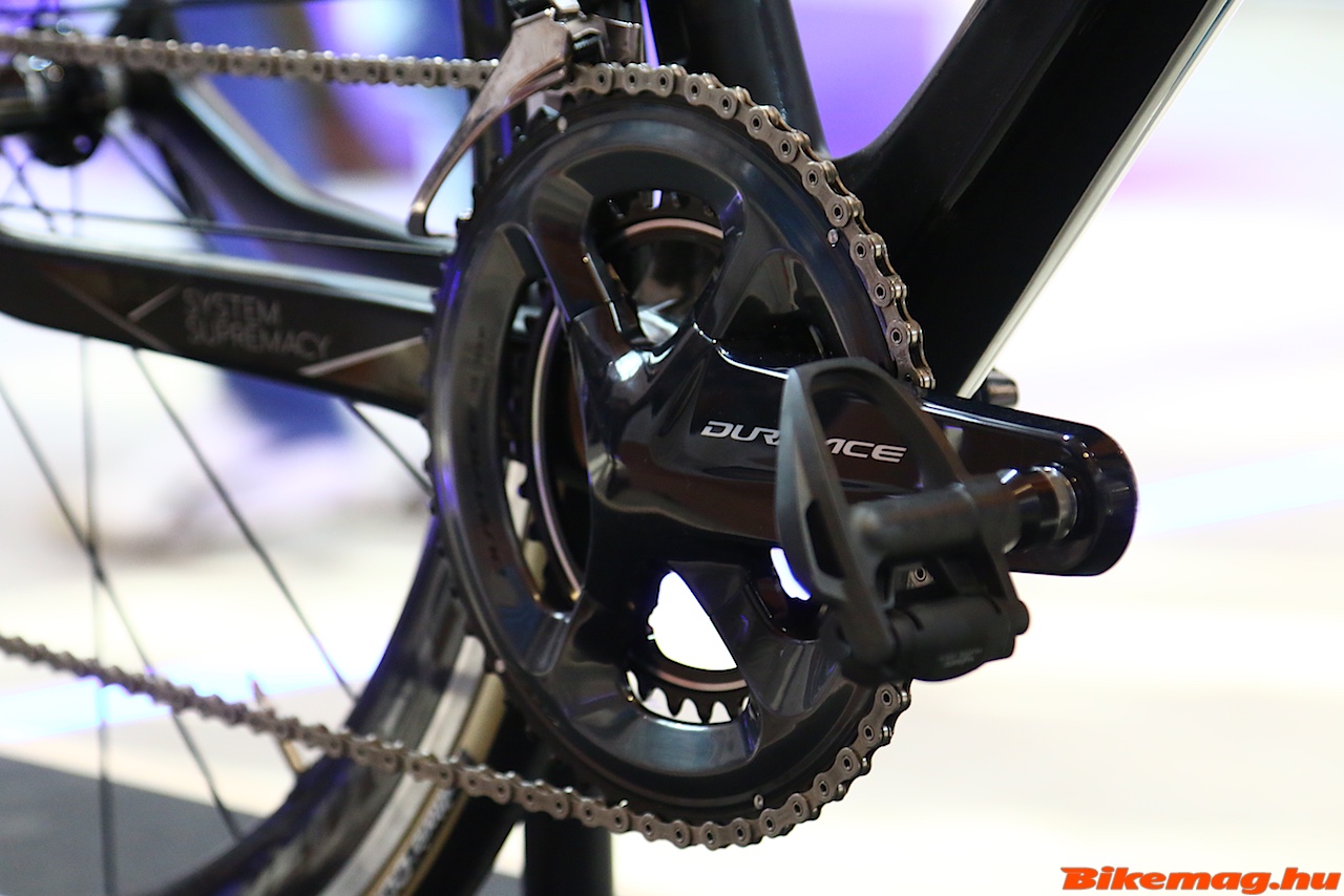 Maradt a 11 fokozat és a dupla tányéros hajtómű (szerencsére), de az igazi nagy újdonság, hogy immáron integrált wattmérővel is meg tudod venni ha a nyakadba szakadt a bank. Sőt tárcsafékes elektronikus Di2 rendszerrel is elérhető lesz, de ebből még demo gép sem volt, annyira új fejlesztés.