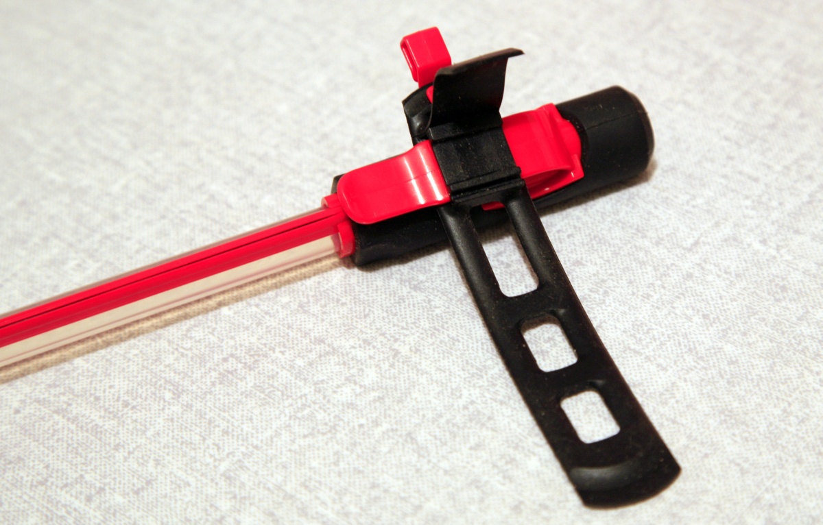 Nekem a támvilla lett a kedvenc rögzítési pontom, de mountain bike-okon általában ki van húzva annyira a nyeregcső, hogy hosszában passzol rá (legnagyobb kiterjedése egyébként 250 mm). Egyébként köszönhetően a flexibilitásának úgy is rögzíthetjük, hogy egyik felét a nyeregcsőhöz, másik végét az ülőcsőhöz bilincseljük. Persze számtalan hely létezik még a bringán, ahová kreatív módon felcsíptethetjük. (Arra figyelni kell azonban, hogy a flexibiltás nem azt jelenti, hogy durván meghajlíthatjuk, ez nem tesz jót az optikai szálnak, és persze a bevezető mondatban említett lézerkardozás sem.)