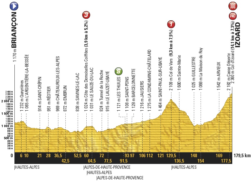 Így érkezünk aztán el a 18. szakaszhoz, amit az utóbbi hetekben több összetett esélyese is jól megnézett magának (a másik kedvelt szakasz értelemszerűen a 17. volt). A 179,5 kilométeres szakasz során meg kell majd másznia az 1. kategóriás Col de Vars-t is (9,3 kilométer, 7,5%-os meredekség), de a lényeg a szakasz végén a Col d’Izoard lesz (14,km, 7,3%), amely egyben az idei Tour de France utolsó kiemelt kategóriás emelkedője is lesz.