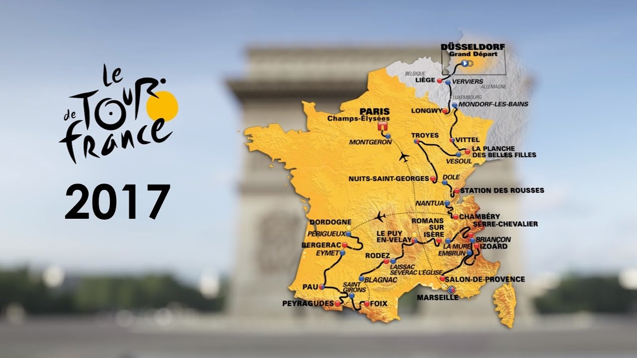 Két rövidebb egyéni időfutam, két vérbeli, klasszikus (és két félig-meddig) hegyi befutó, és sok mezőnybefutót sejtető szakasz jellemzi majd a 104. Tour de France-t (2017. július 1-23.). A verseny 1987 után újra Németországból (Düsseldorfból) rajtol, és érinti majd Belgiumot és Luxemburgot is.