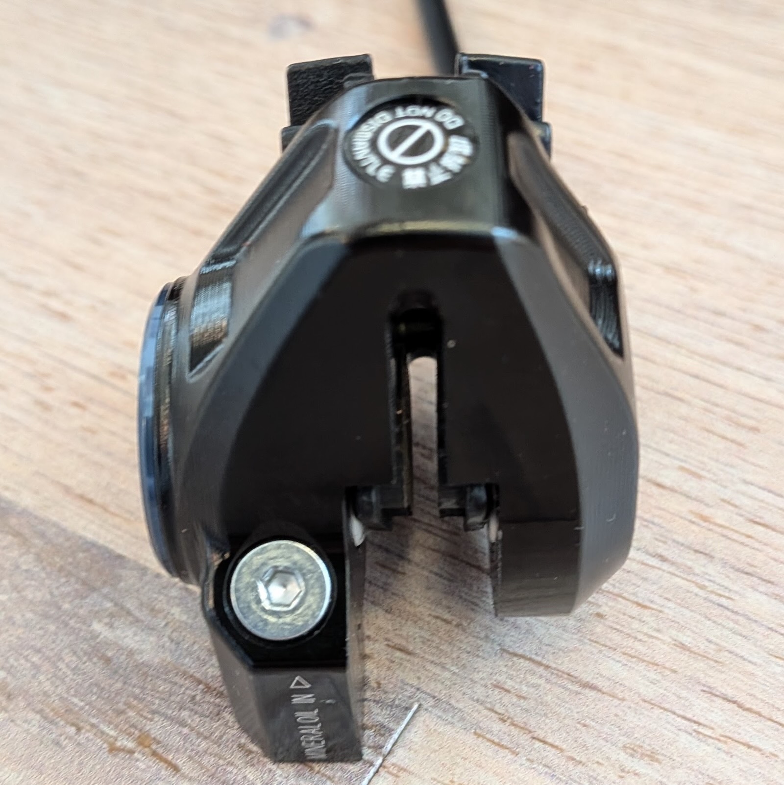 A bal karon egy gomb van, hiszen két tányérból mindig a másikra tudunk csak váltani. Különösen tetszik, hogy a gombok elfordulnak és egy pici mozgás után nyomjuk neki a mikrokapcsolót a fékkar másik oldalához. A gumik minősége jónak tűnik, de nem illeszkedik teljesen precízen. A bilincs csavarja sem túl jól hozzáférhető az imbuszkulccsal – már látom, hogy a felszerelésnél ezzel meg fogok szenvedni.