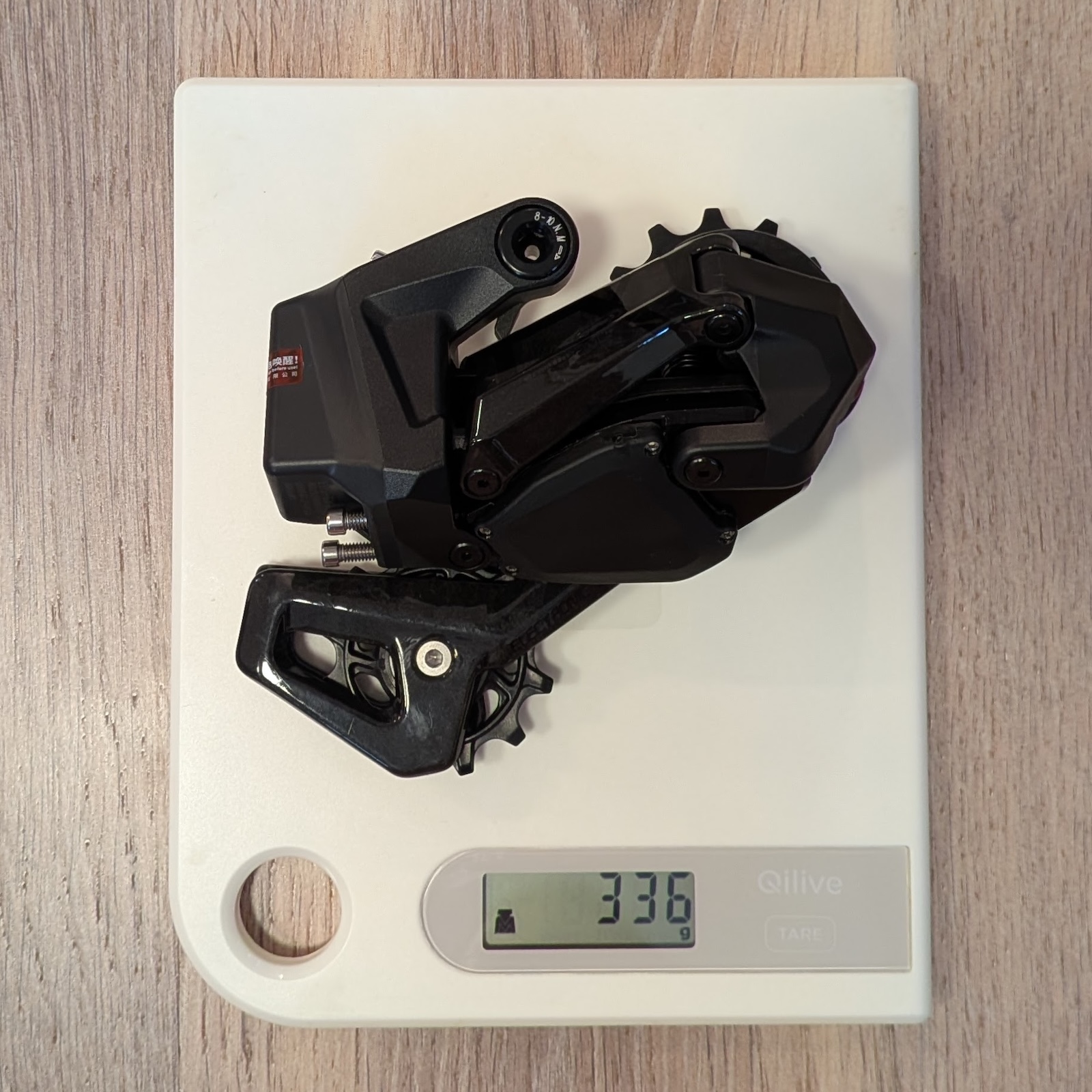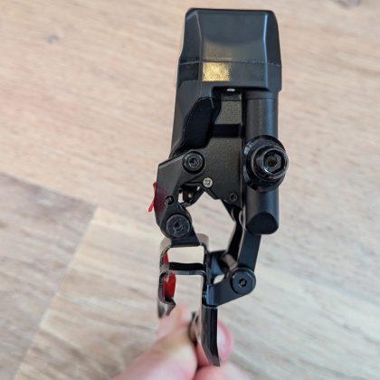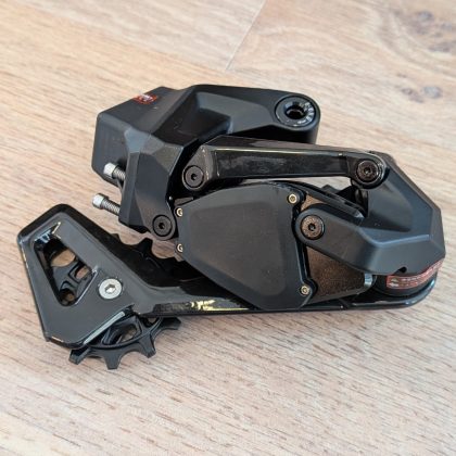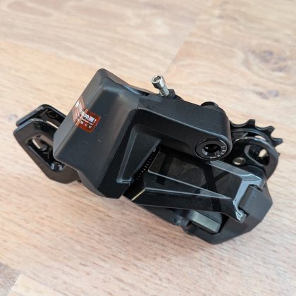 A hátsó váltó igen robosztus. Az előlap és a kanál karbonból van, a váltógörgők pedig nagyon szépen forognak. A szerkezet feszes, a kanál nem lötyög – ami dicséretes, mert manapság ez egyre kevésbé magától értetődő.